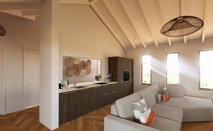 Deze spiksplinternieuwe, sfeervolle ingerichte en luxe villa (opgeleverd in 2026) ligt in Hofi Sint Joris, het ongerepte noordoosten van Curaçao en op slechts 15-20 autominuten van Willemstad, Jan Thiel en Mambo Beach.