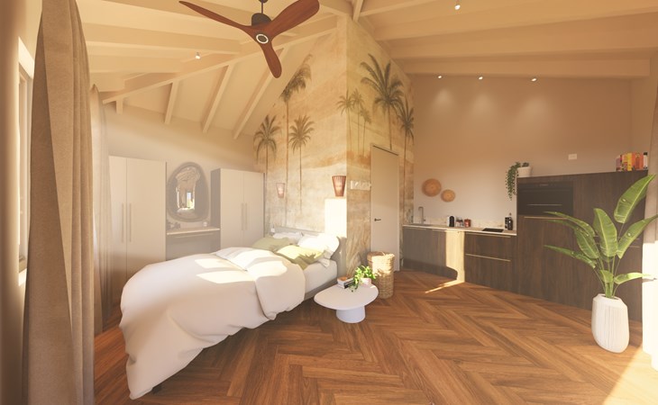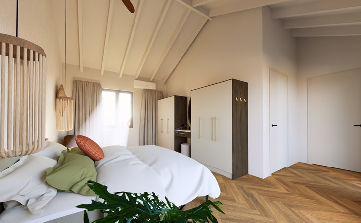 De villa heeft in totaal vier ruime slaapkamers met tweepersoonsbedden en drie moderne badkamers, wat zorgt voor veel comfort en privacy voor alle gasten. Drie slaapkamers, waarvan twee met badkamer, bevinden zich in de villa. Naast de villa staat een volledig zelfstandige studio met een eigen badkamer en keuken. Deze extra ruimte is perfect voor bijvoorbeeld grootouders, een stel of gasten die wat meer privacy wensen. In de woonkamer is er nog een slaapbank, geschikt voor twee personen.