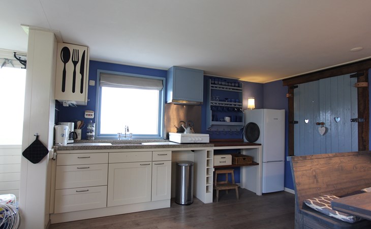 Op de begane grond bevindt zich een sfeervolle en ruime bedstee met een comfortabel tweepersoonsbed. Deze karakteristieke slaapruimte geeft het appartement een warme, knusse en zelfs romantische uitstraling. Daarnaast vindt u beneden een volledig ingerichte keuken waar u moeiteloos uw eigen maaltijden bereidt, evenals een badkamer en een apart toilet. Alles is aanwezig voor een zorgeloos verblijf.