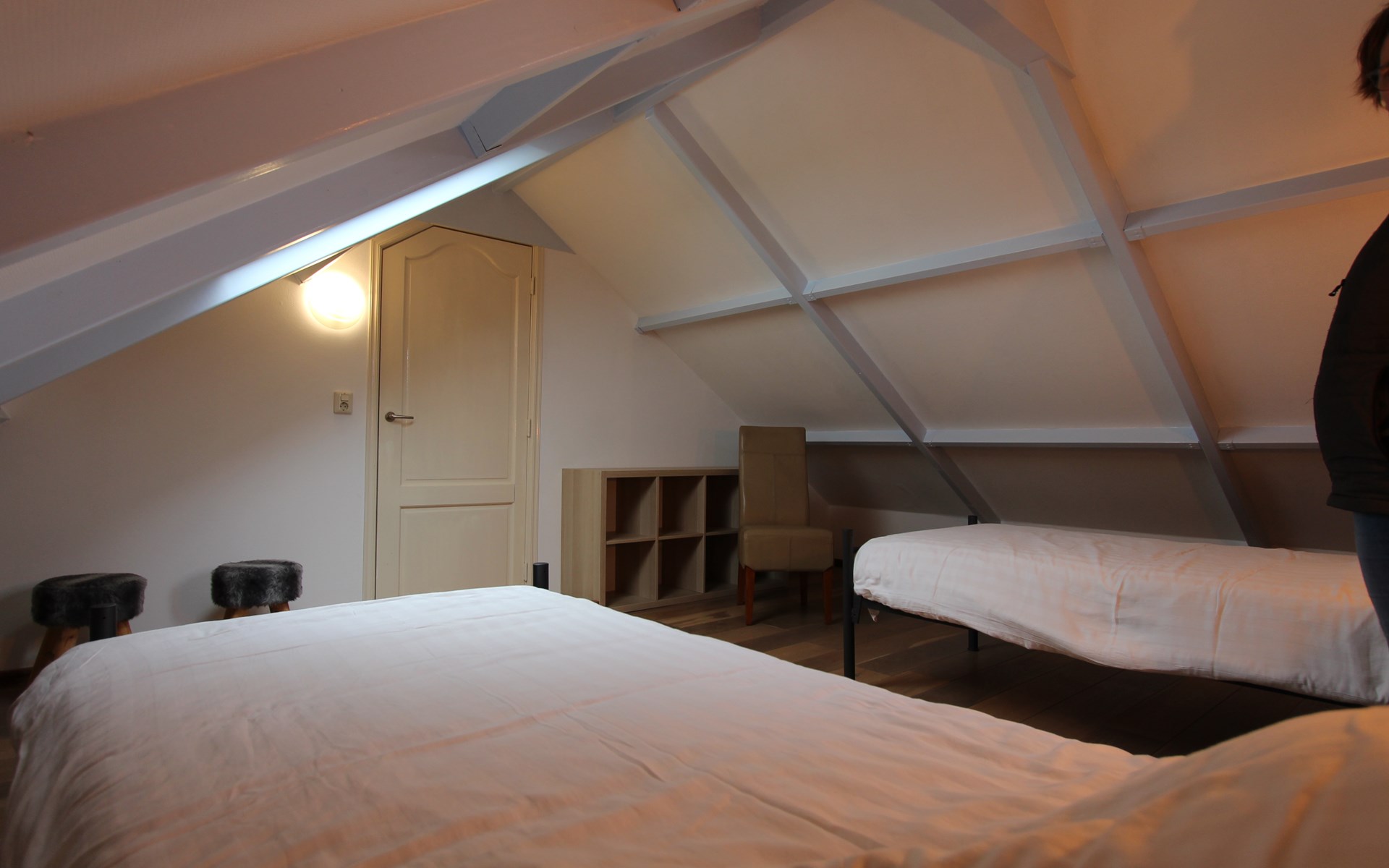 Op de bovenverdieping bevinden zich twee ruime slaapkamers, geschikt voor in totaal vier personen. Eén slaapkamer is ingericht met een tweepersoonsbed, de andere met twee losse bedden. Dankzij deze indeling is De Zilverreiger zeer geschikt voor gezinnen, families of vrienden die samen willen genieten van een ontspannen vakantie in Noord-Holland.