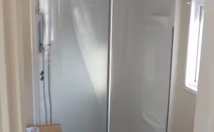 De badkamer beschikt over een douche en wastafel.