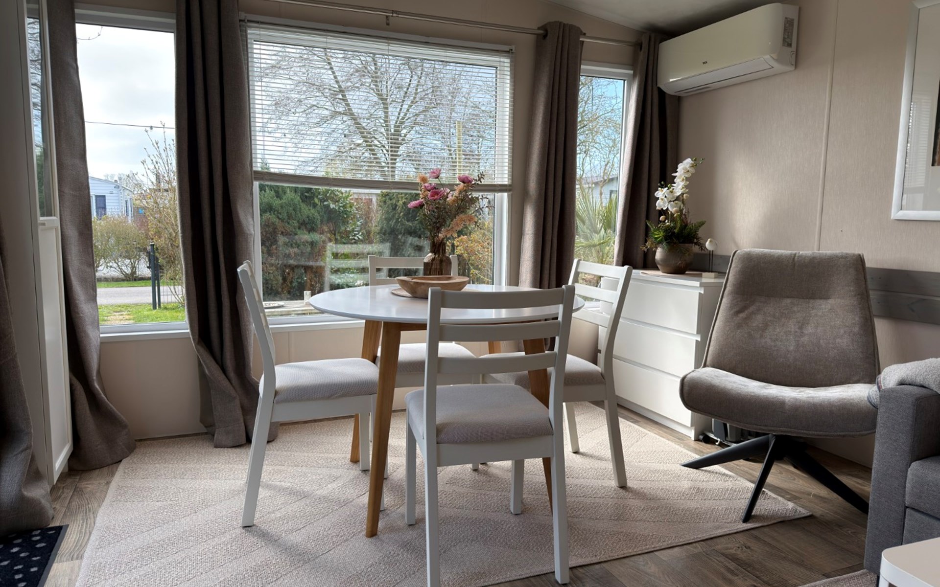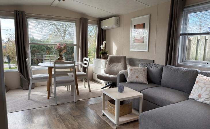 Welkom in dit splinternieuwe chalet, dé ideale plek voor een heerlijke vakantie in de prachtige Kop van Noord-Holland. De gezellige woonkamer nodigt direct uit om te ontspannen, met een comfortabele bank waar je na een actieve dag helemaal tot rust komt. Met de smart TV en gratis WiFi heb je altijd entertainment binnen handbereik en blijf je moeiteloos verbonden.