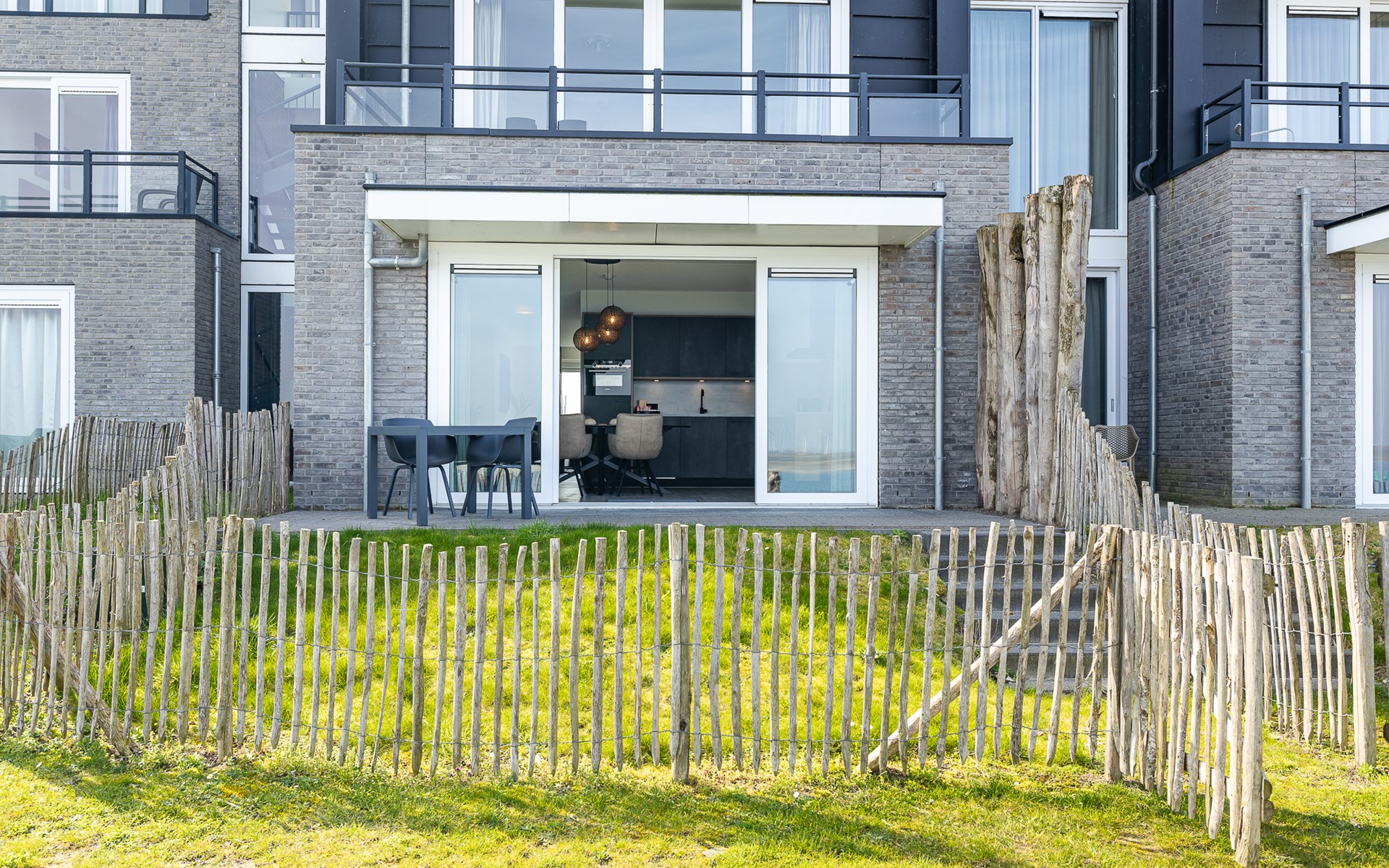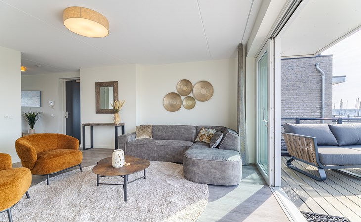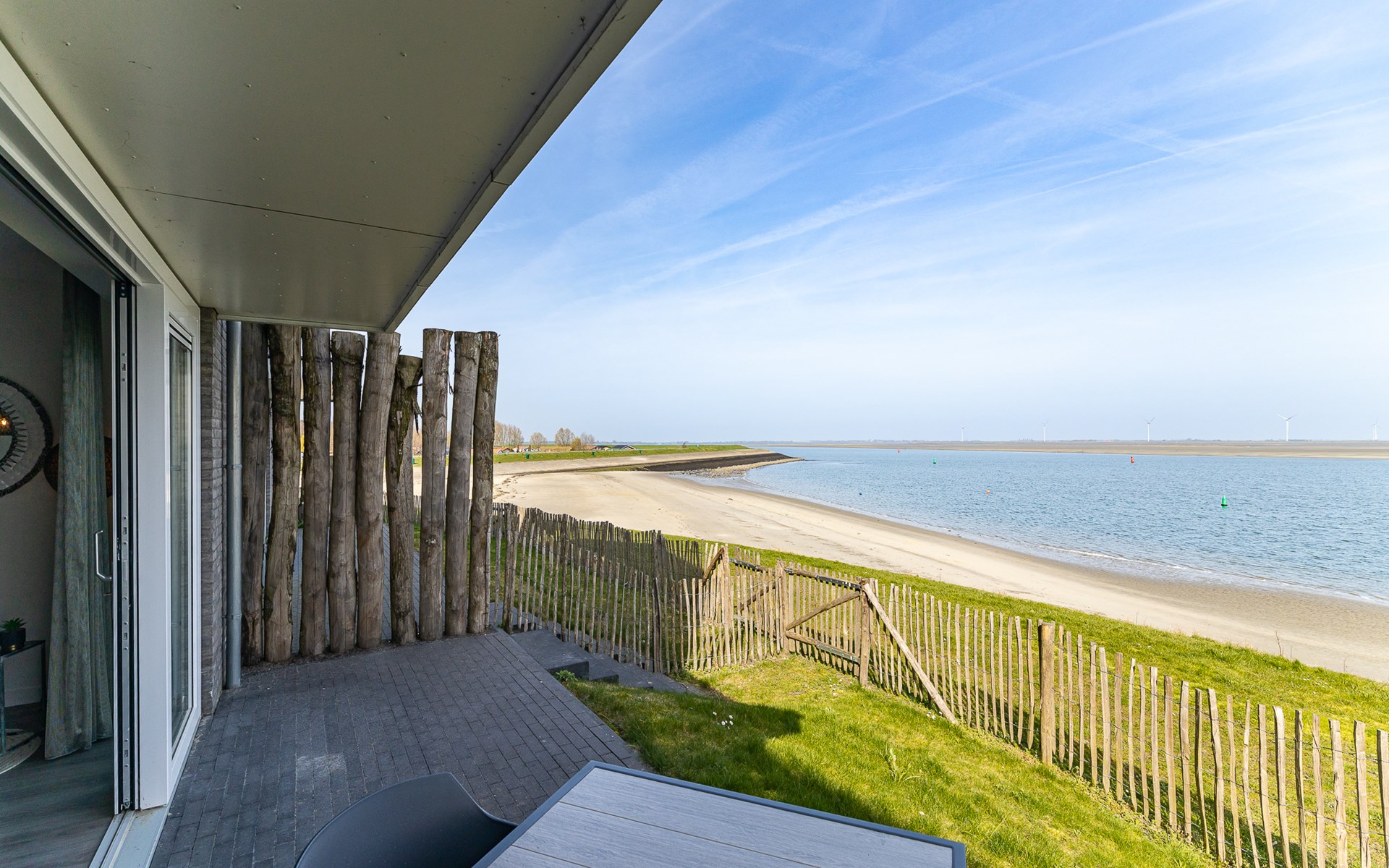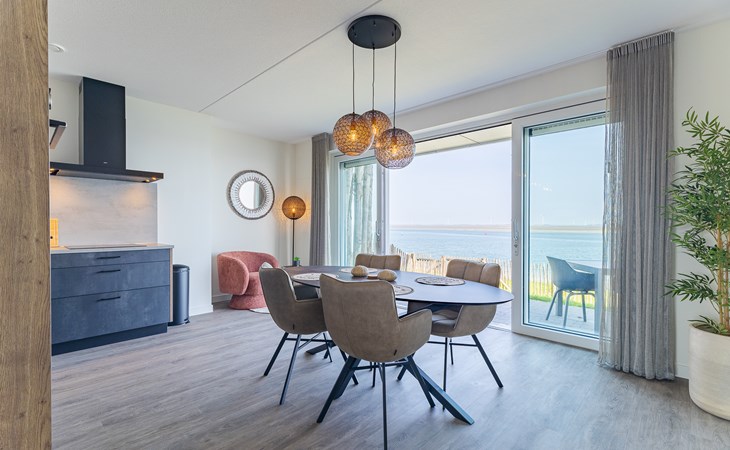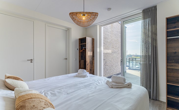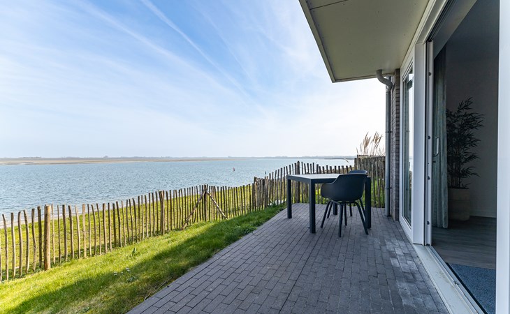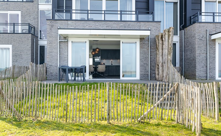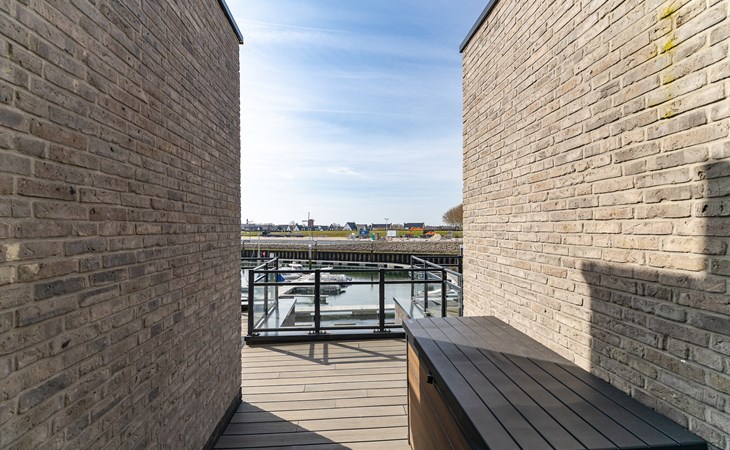 Buiten heb je keuze. Aan de voorzijde ligt het terras (30 m²) met uitzicht op de jachthaven, waar je in de middag- en avondzon zit op de loungebank of aan tafel. Aan de achterzijde vind je de tuin (22 m²) met een knus zitje voor de ochtendzon. Via een poortje loop je zo het strandje op: ideaal voor een korte wandeling of gewoon even uitwaaien. Van woonkamer tot terras ontdek je steeds weer een nieuw plekje waar je net iets langer blijft zitten dan gepland.