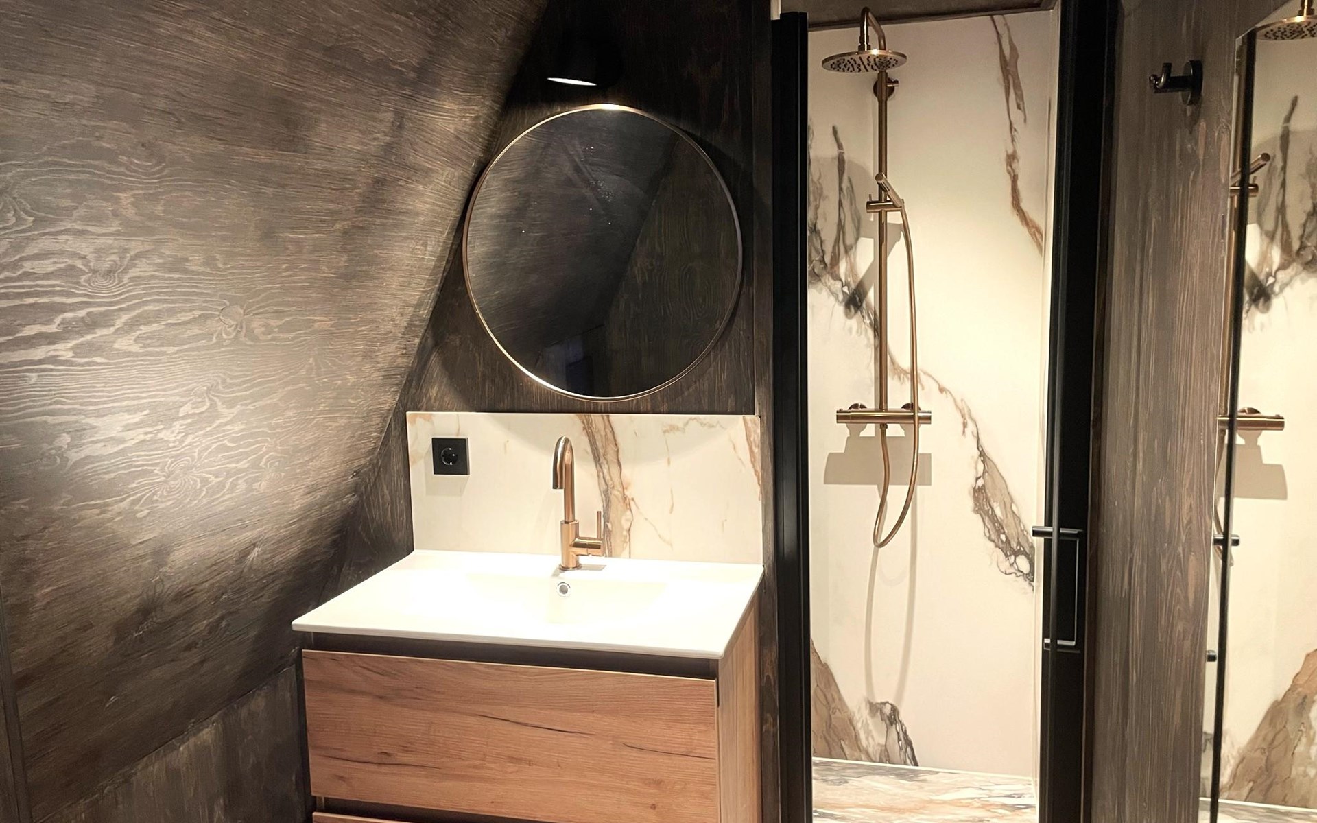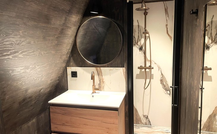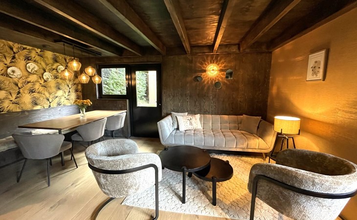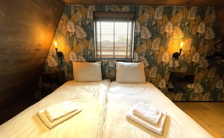 Op de bovenverdieping vindt u een riante slaapkamer met tweepersoons boxspringbed en een luxe badkamer met regendouche, wastafel en toilet. Heeft u liever een slaapkamer met badkamer op de begane grond? Geef dit dan aan bij het maken van de reservering, we maken dit graag voor u gereed*.