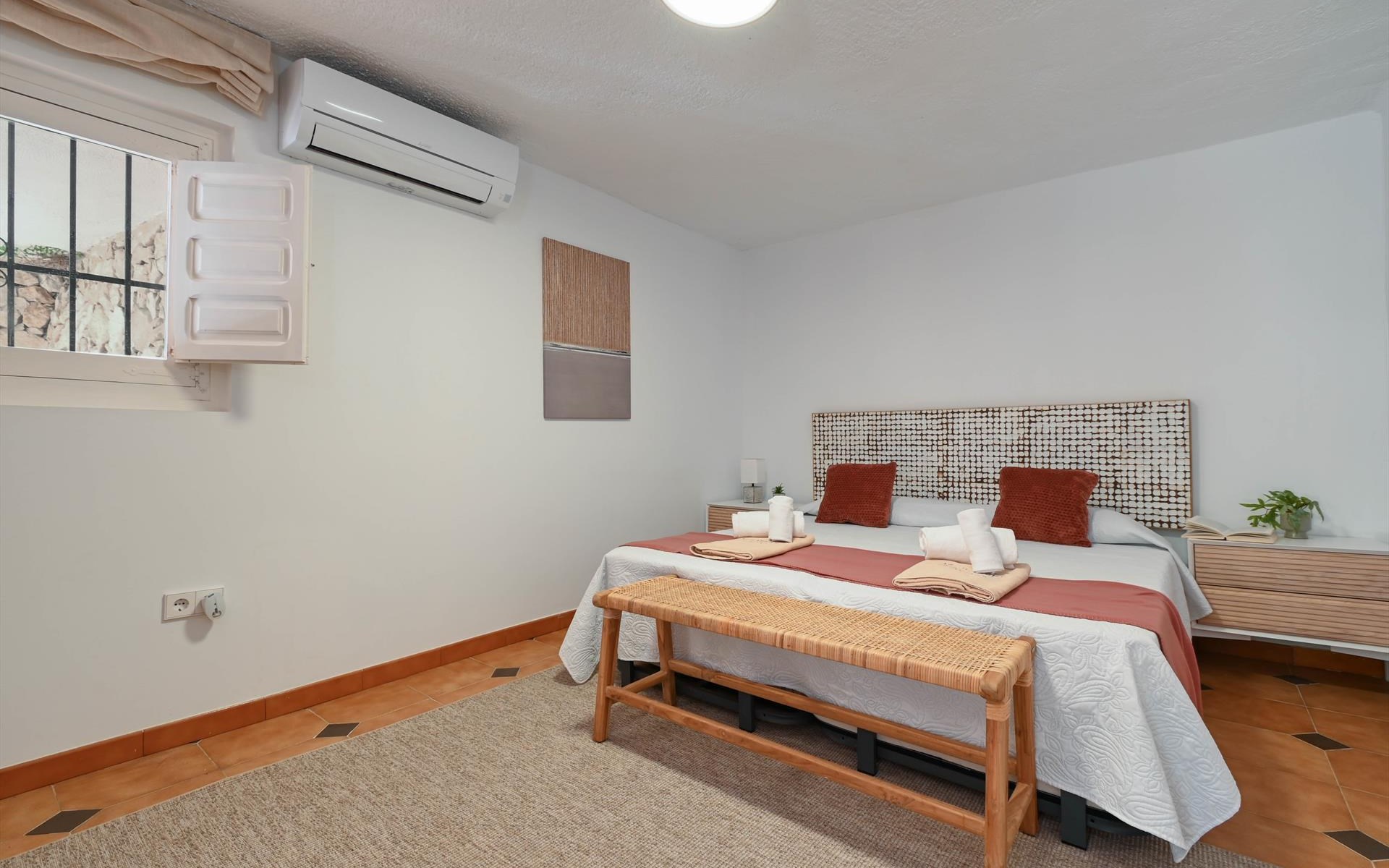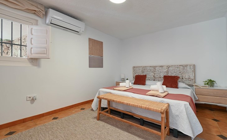 - slaapkamer met airconditioning en kingsize bed (190 bij 180 cm)