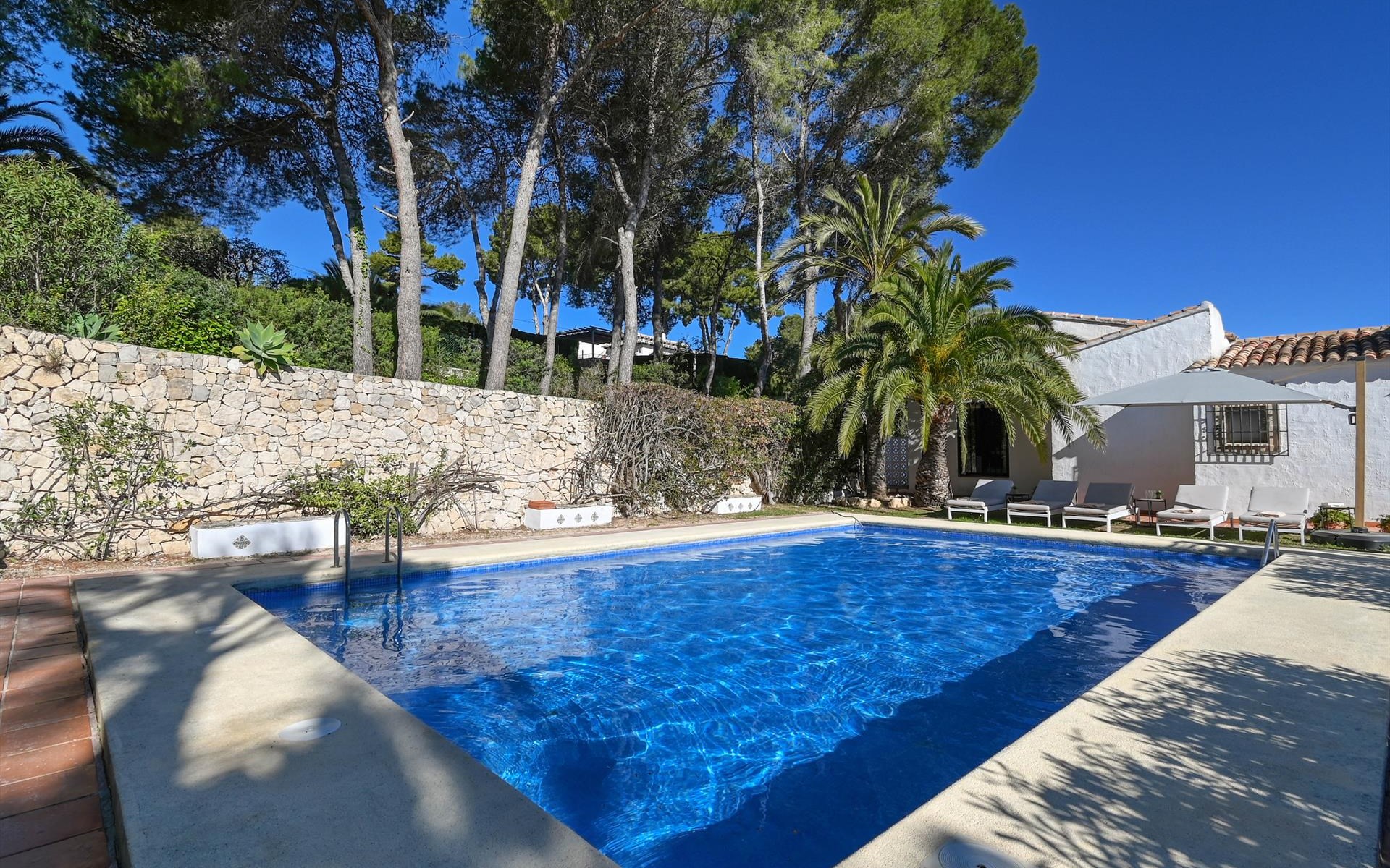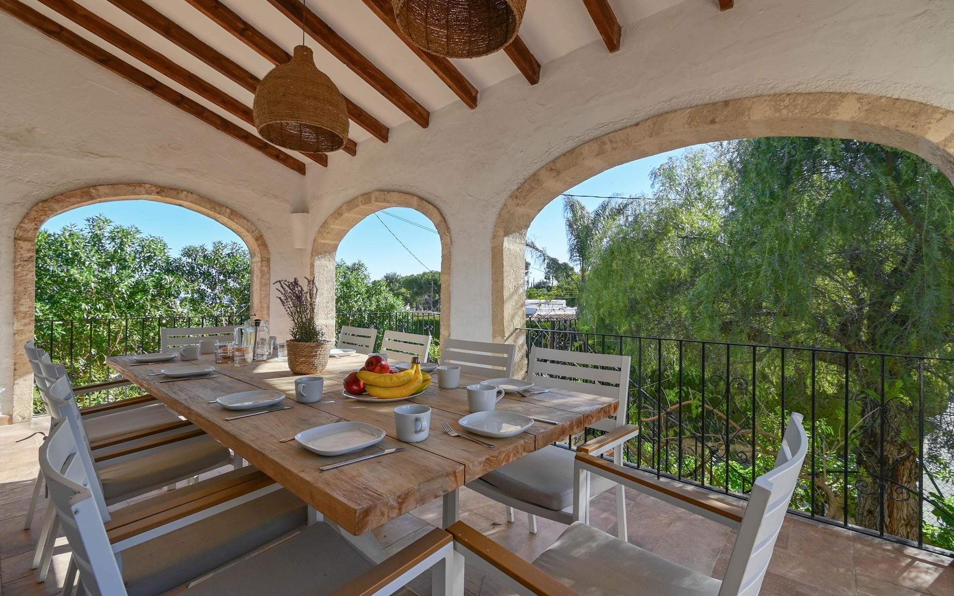Grote en aangename villa met privézwembad in Jávea, Costa Blanca, Spanje voor 10 personen. Het huis is gelegen in een residentiële strandwijk en 3 km van het strand El Arenal, Jávea.