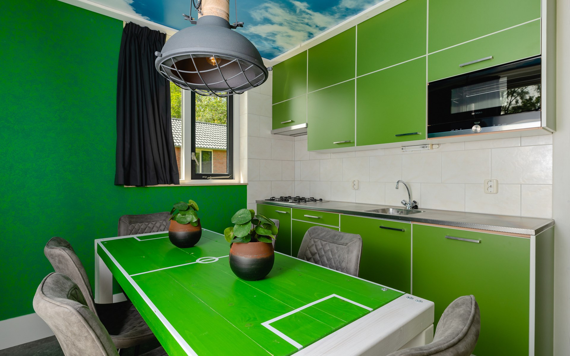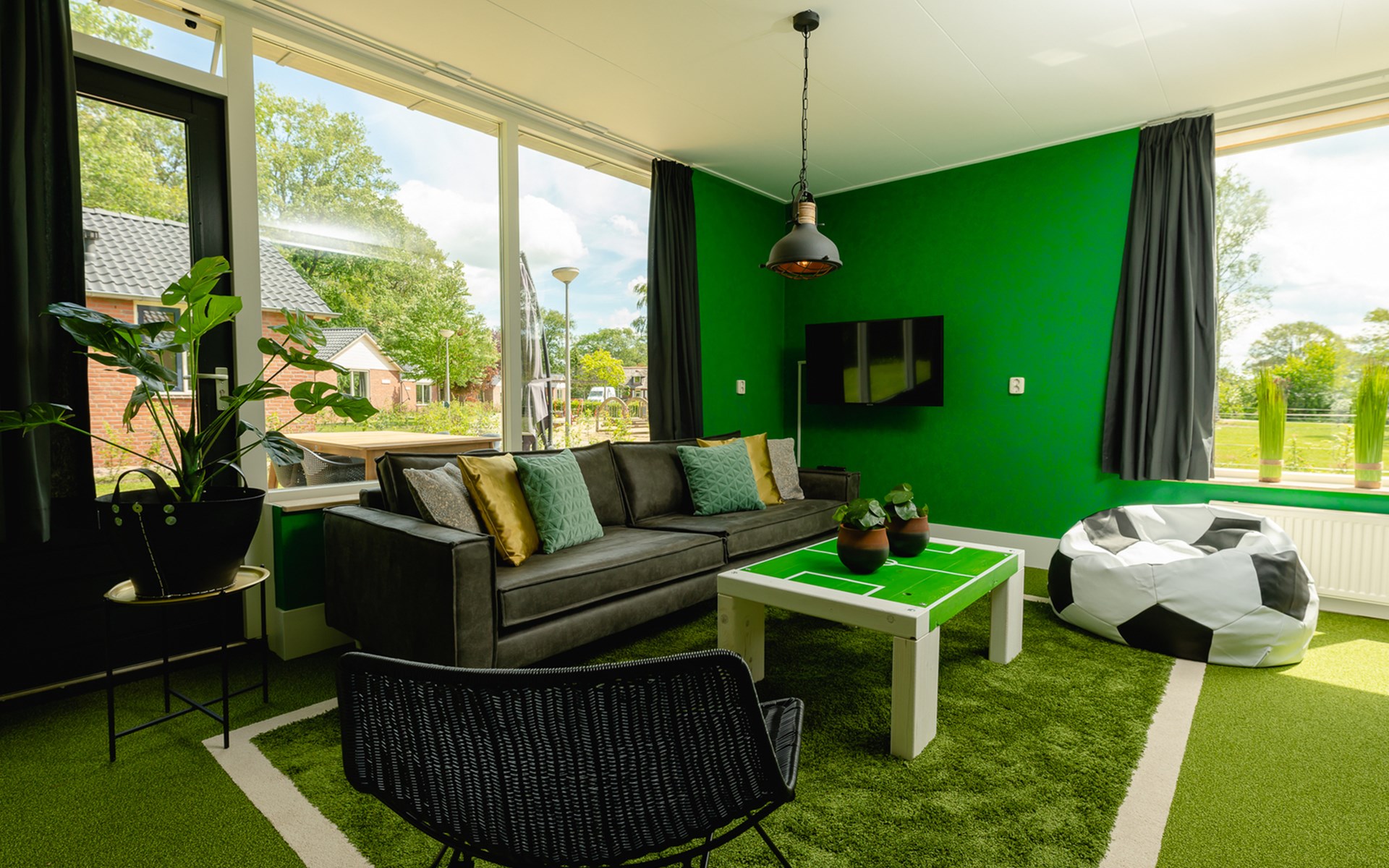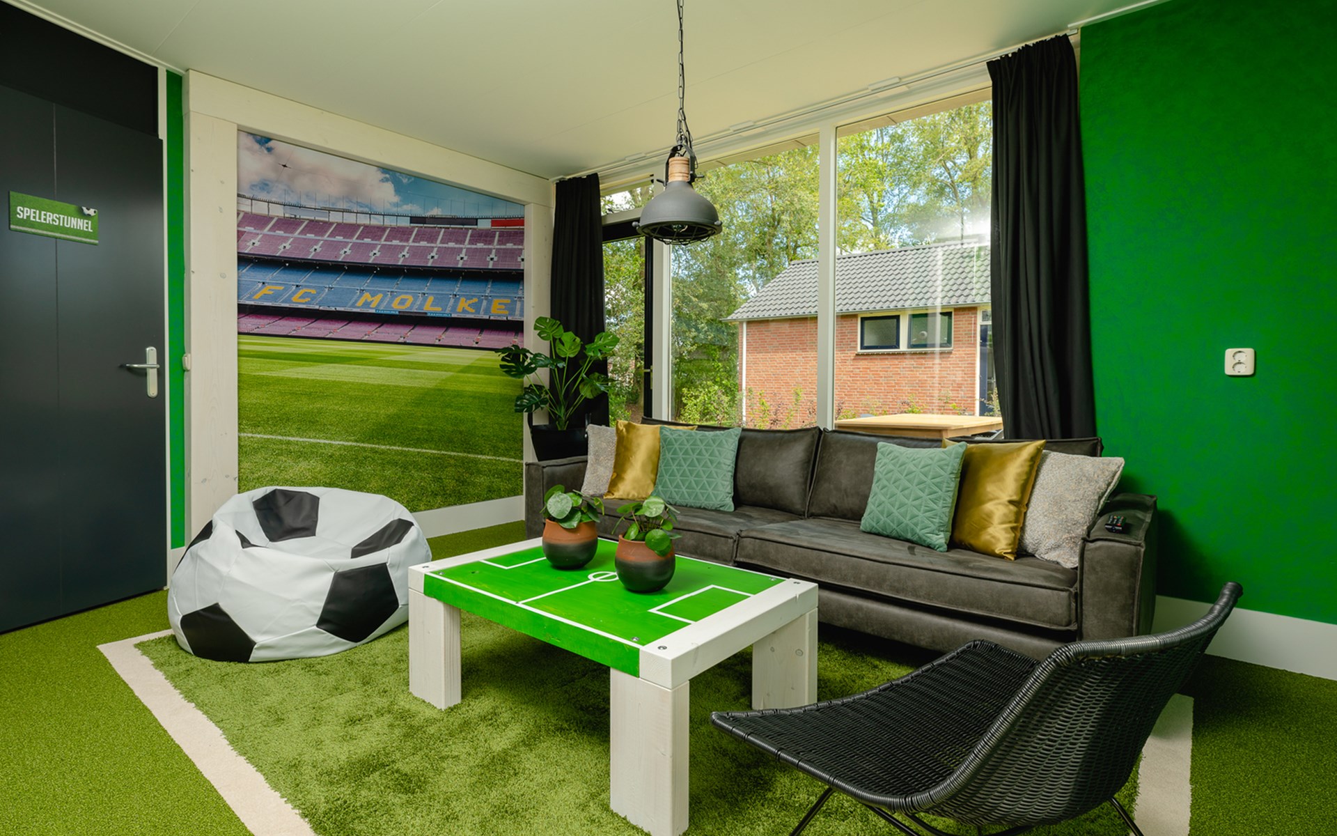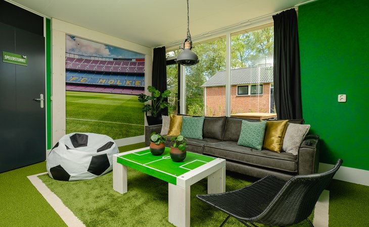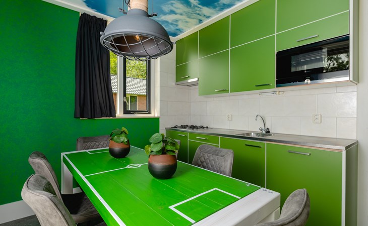 Deze bungalow is één grote ode aan het spelletje. Van de royale woonkamer in spelershome-stijl tot de thematische details in elke hoek. De keuken is luxe ingericht, met vaatwasser en magnetron, zodat je ook op trainingsvrije dagen weinig hoeft te doen. Alles voelt alsof je even het leven van een profvoetballer leeft. Maar dan relaxed. En op Twentse snelheid.