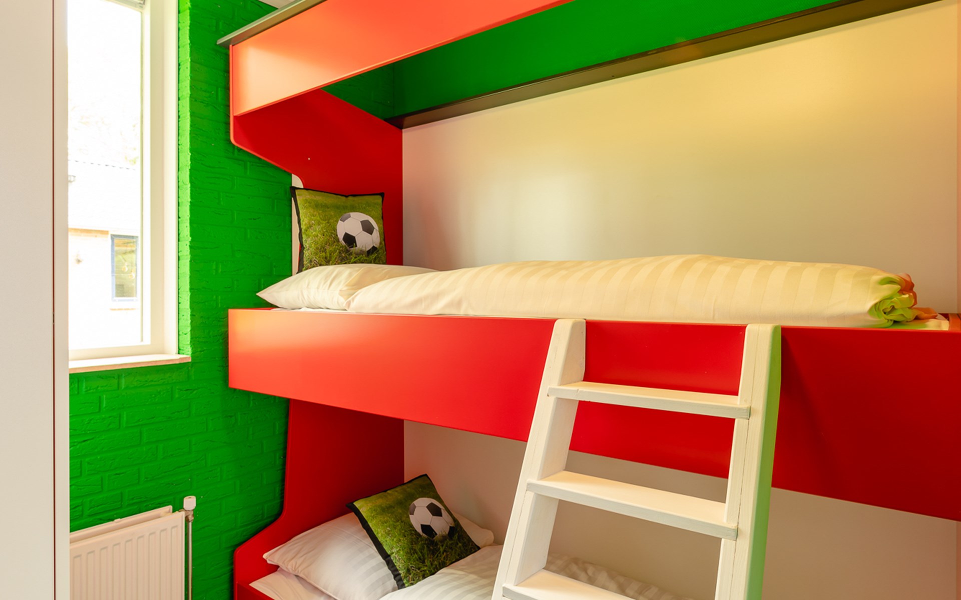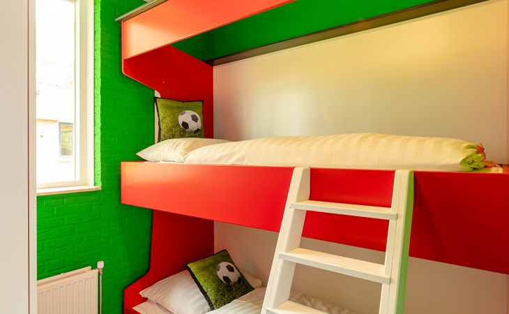 • Slaapkamer met stapelbed in voetbalthema