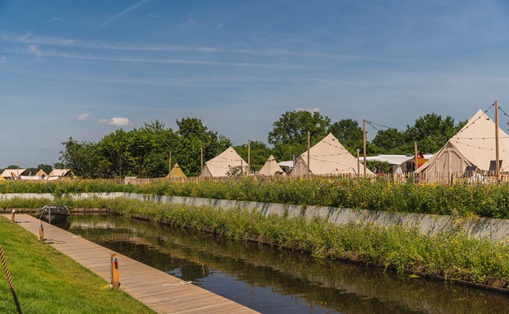Hier slaap je midden in de natuur, hóór je de vogels fluiten en rol je zó vanuit je tent het buitenleven in. Maar dan wel de luxe-variant hoor, want deze tentjes zijn compleet ingericht.