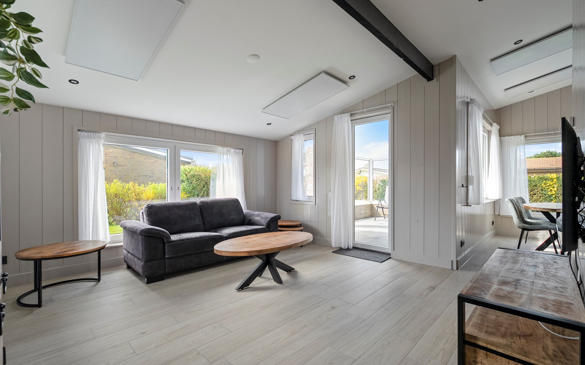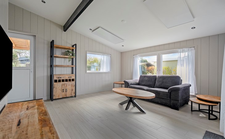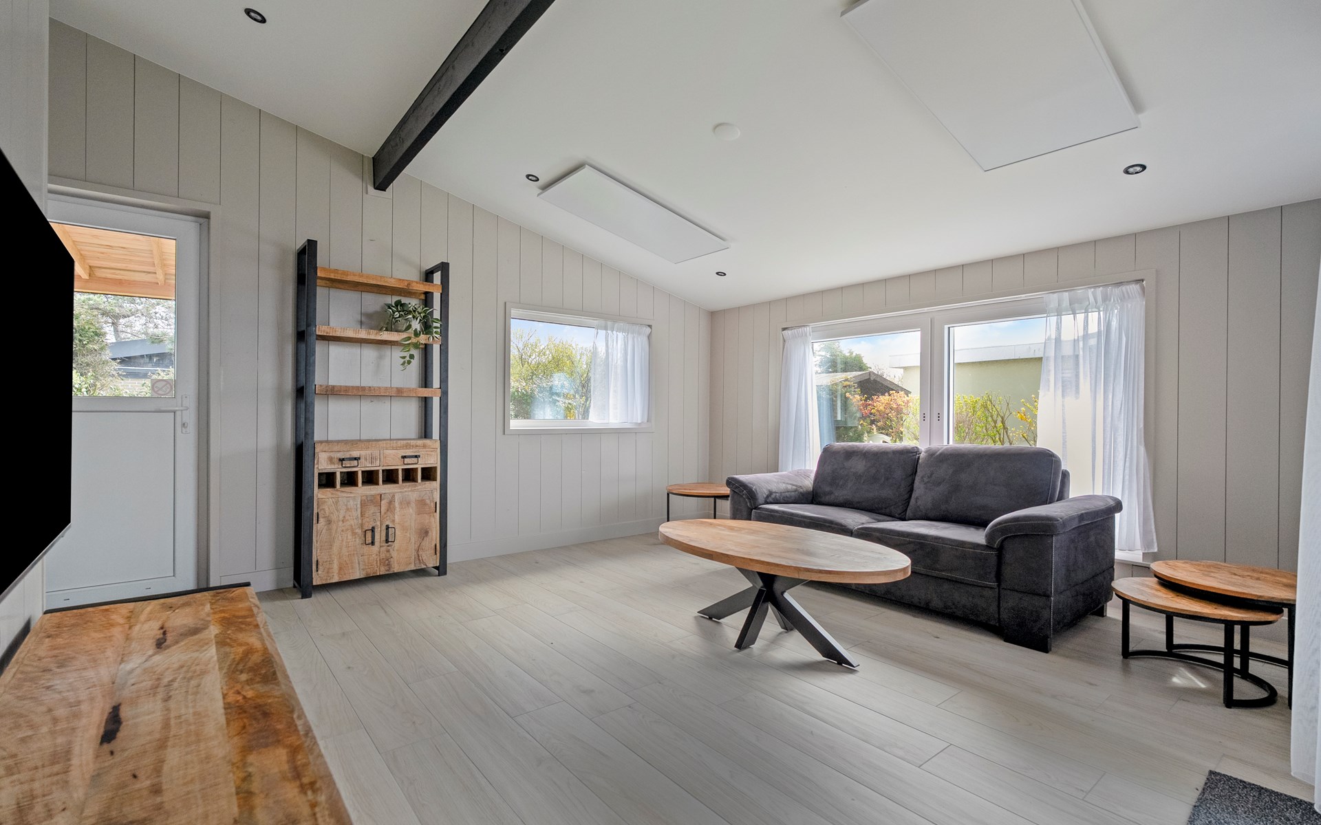 Brasa aan Zee is met veel oog voor detail vernieuwd en ingericht in een moderne, warme stijl. De lichte woonkamer vormt het hart van het huis, met een comfortabele zithoek en openslaande deuren naar de tuin. Dankzij de grote ramen valt er veel daglicht binnen, wat zorgt voor een ruimtelijk en ontspannen gevoel.