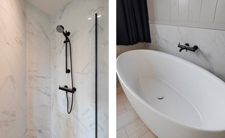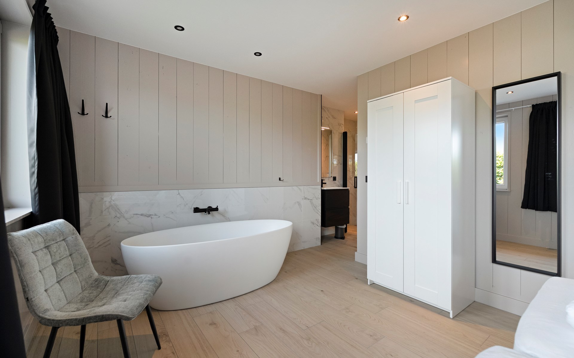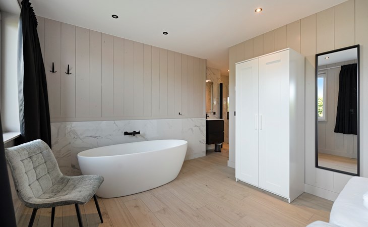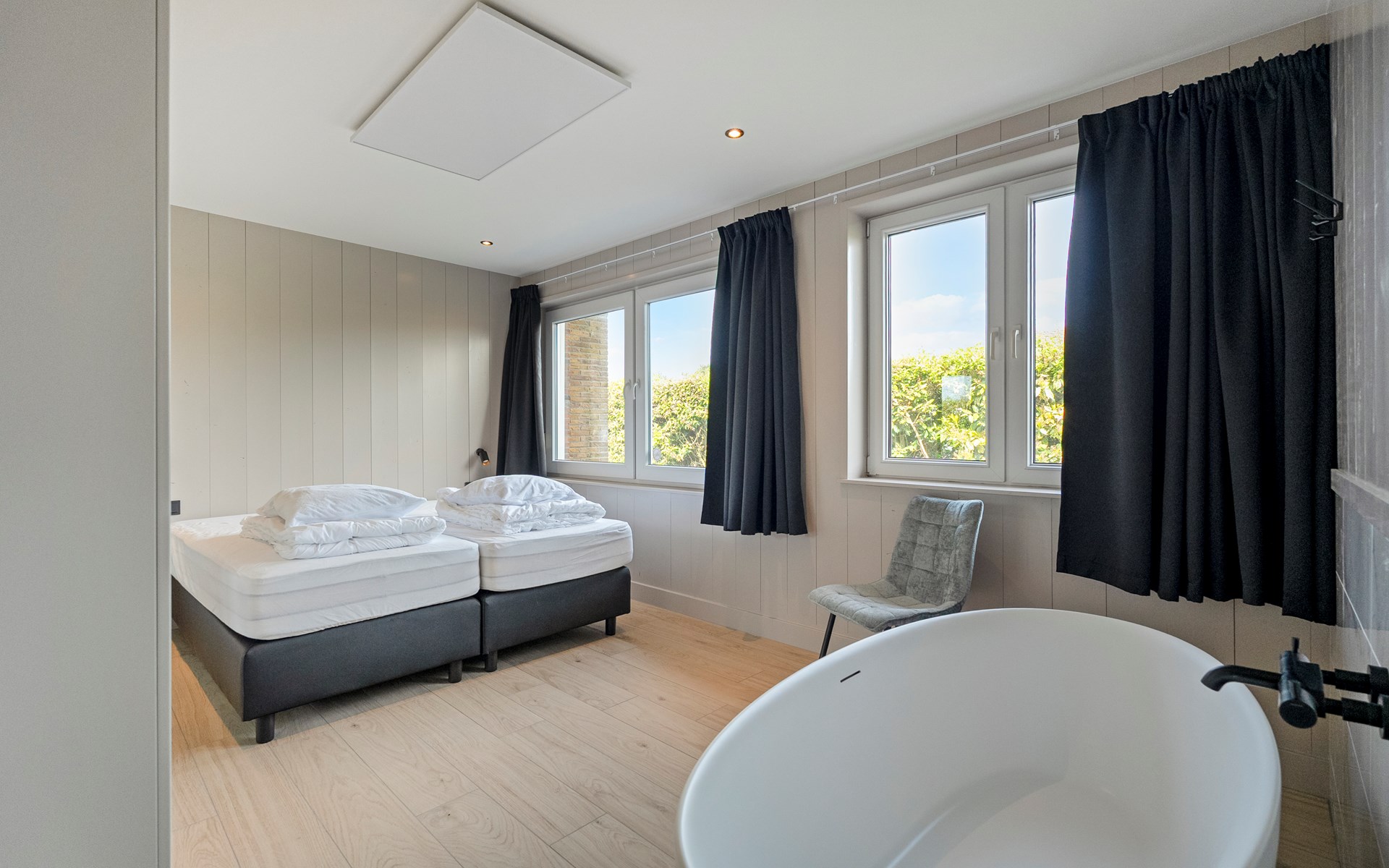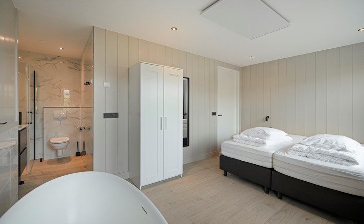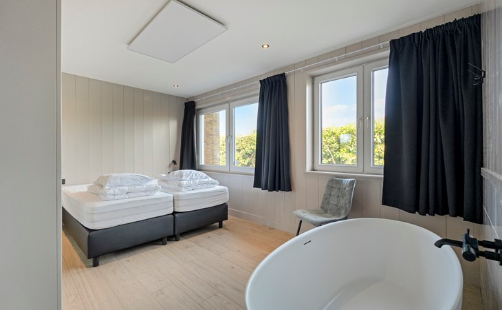 Het vakantiehuis is geschikt voor maximaal vier personen en beschikt over twee comfortabele slaapkamers met fijne bedden. Daarnaast zijn er twee luxe badkamers aanwezig, wat zorgt voor extra comfort en privacy – ideaal voor gezinnen of twee stellen die samen reizen.