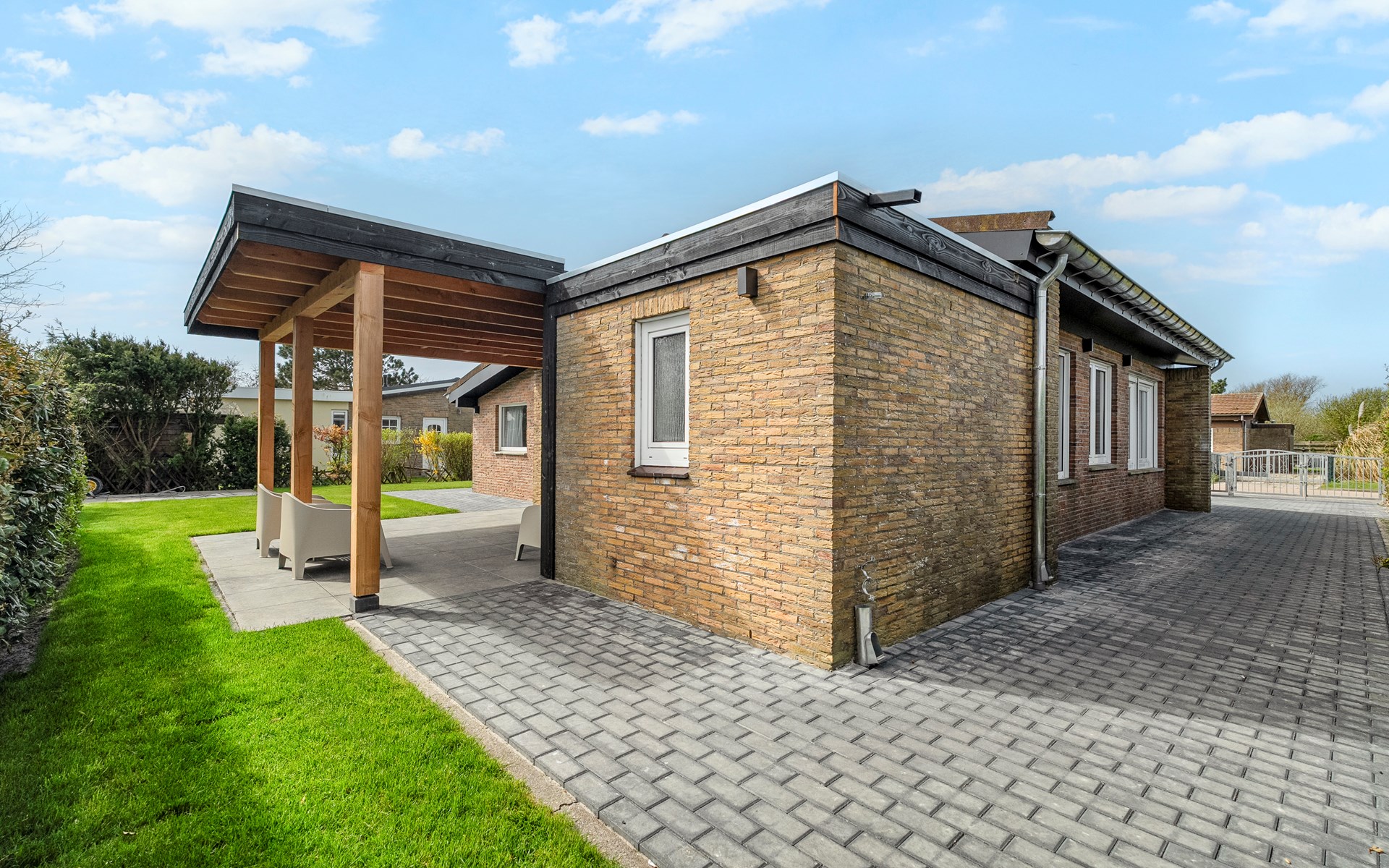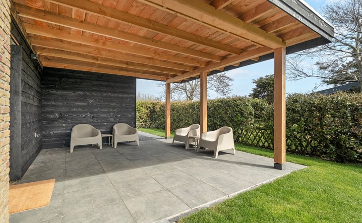 Een absolute plus is de sfeervolle overkapping. Hier zit u heerlijk beschut, of het nu een warme zomerdag is of een frisse avond. Het is de perfecte plek om te ontbijten, te borrelen of gewoon even tot rust te komen met uitzicht op de tuin.