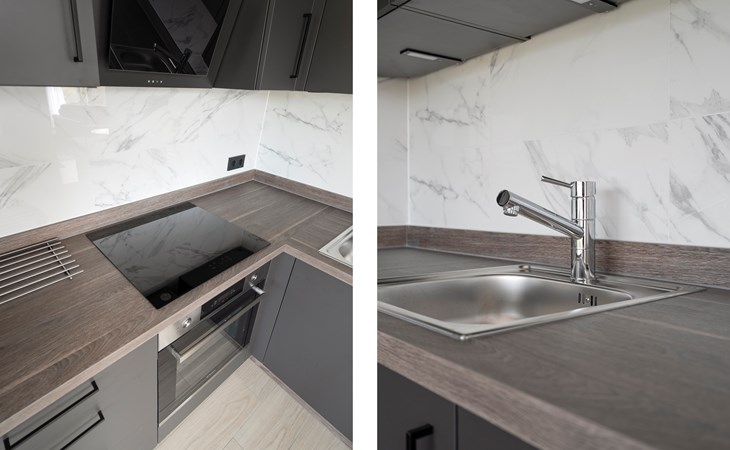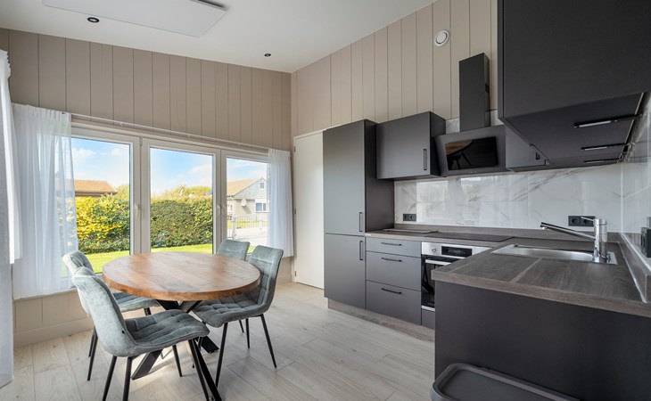 De moderne keuken is volledig uitgerust en van alle gemakken voorzien. Hier vindt u onder andere een combimagnetron/oven en een koel-vriescombinatie, waardoor u eenvoudig zelf een uitgebreid diner kunt bereiden of een snelle maaltijd op tafel zet na een dag aan zee.