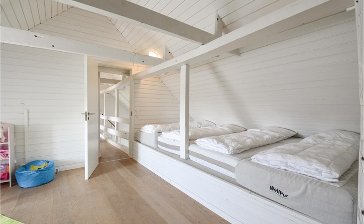 Een van de slaapkamers, gelegen op de 1e verdieping, is bijzonder geschikt voor kinderen en tieners, aangezien het een grote alkoof heeft met zes hoogwaardige matrassen.