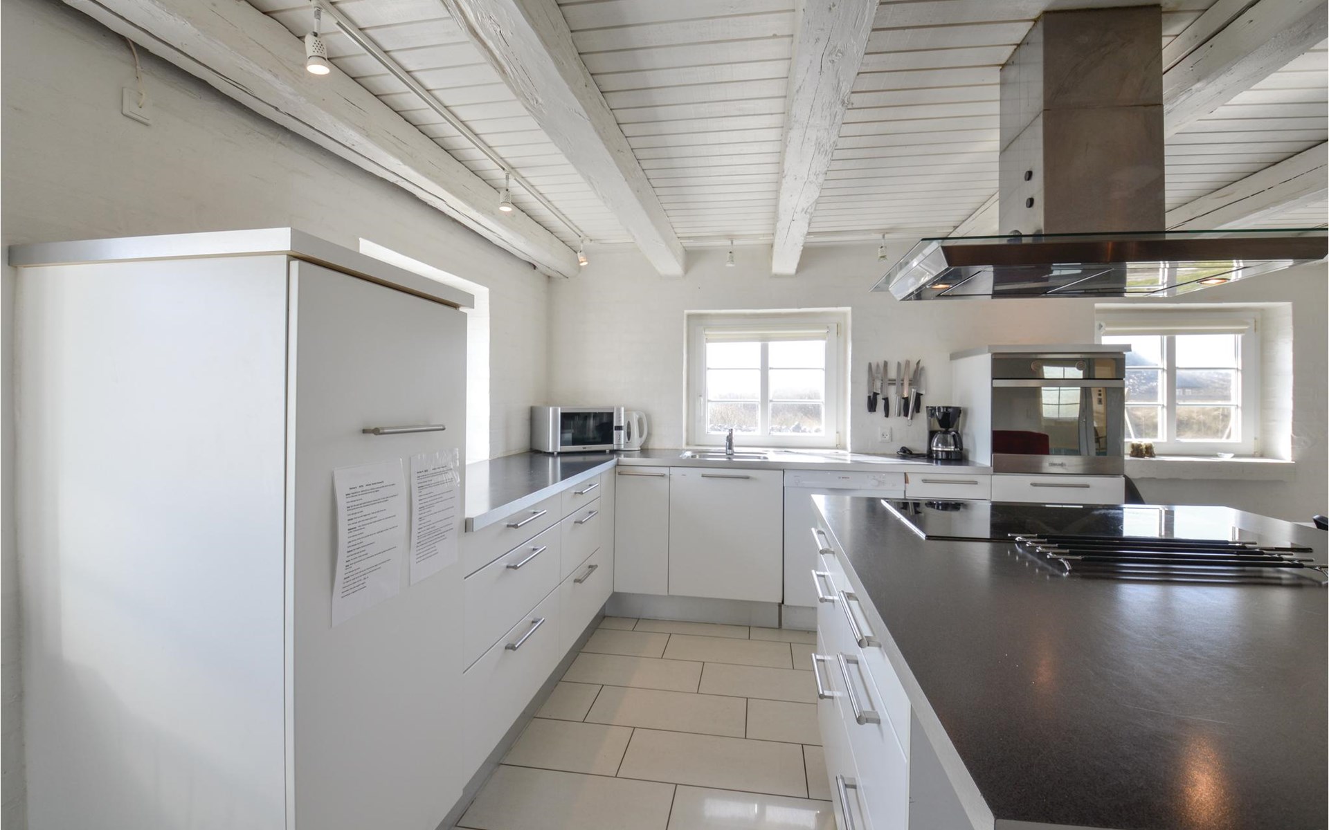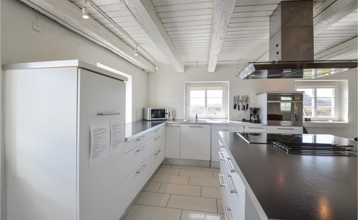 De grote keuken op de begane grond staat in open verbinding met het eet- en woongedeelte en biedt veel ruimte.