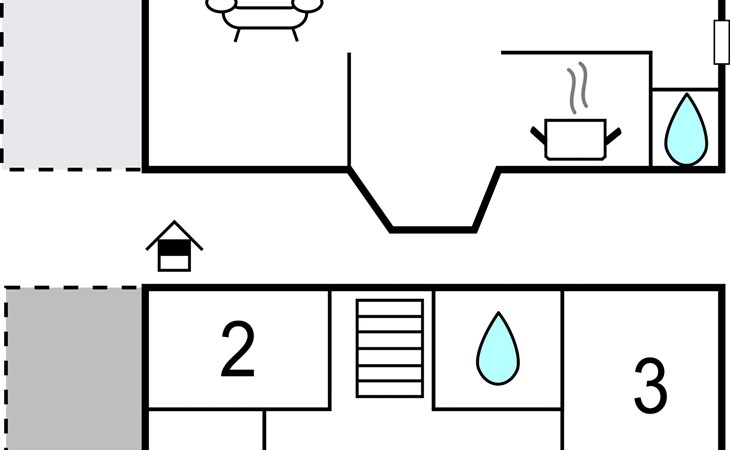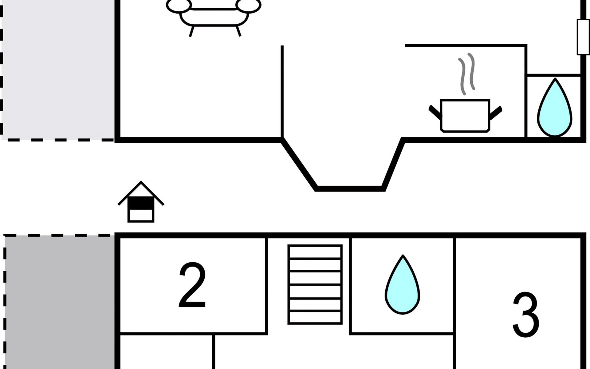 De drie parkeerplaatsen voor het huis, de garage en de kelder bieden voldoende bergruimte.