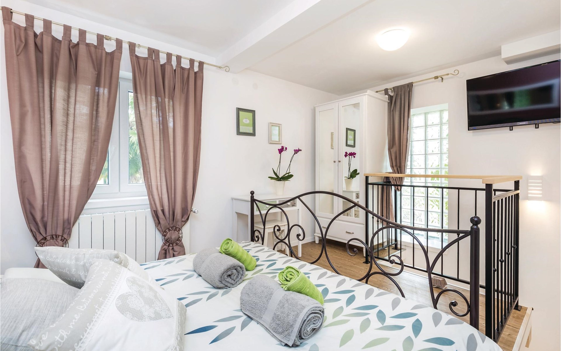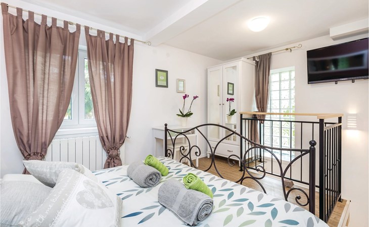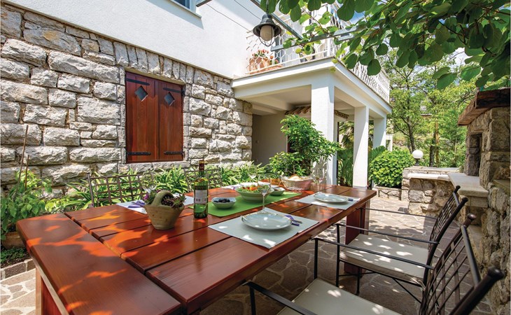In het dorp Rukavac, boven de Kvarner-baai, vindt u dit kleine maar gezellige en mooi ingerichte halfvrijstaande huis. Vanaf de begane grond, met woonkamer, keuken en badkamer, leidt een trap naar het open slaapgedeelte. Vanuit slaapkamer nr. 1 bereikt u slaapkamer nr. 2, waar een stapelbed staat. NETFLIX is beschikbaar voor filmliefhebbers. Het gemeenschappelijke terrein is omheind en uw kinderen kunnen zorgeloos spelen terwijl u in alle rust een goed boek leest, een glas wijn drinkt, zonnebaadt bij het zwembad of barbecuegerechten bereidt. De eigenaar runt een biologische frambozenkwekerij en leert u graag hoe u verschillende frambozenproducten kunt bereiden.