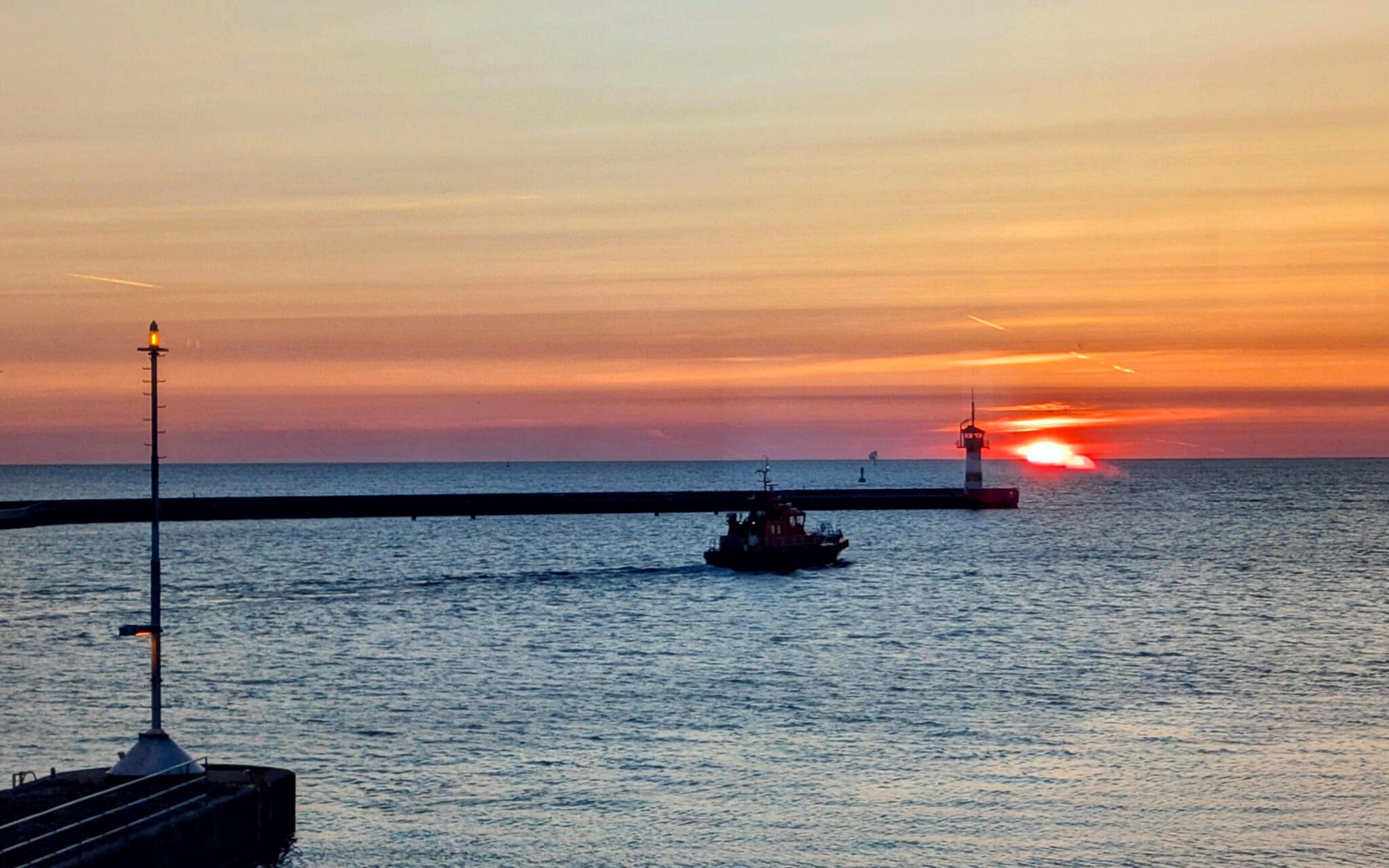 Geniet van het prachtige uitzicht op de Baltische Zee vanaf het balkon, de woonkamer of de eethoek en kijk vanaf hier naar de grote Scandinavische veerboten die de haven in- en uitvaren, die dichtbij genoeg zijn om aan te raken.