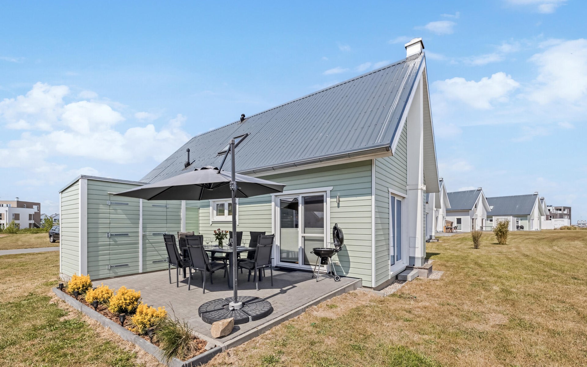 Omdat de huizen direct aan de kust liggen, vragen wij uw begrip dat het terrasmeubilair alleen in het zomerhalfjaar beschikbaar is; in het winterhalfjaar is het veilig opgeborgen vanwege de vaak harde wind. Houd er rekening mee dat vissen in het havenbekken niet is toegestaan.
