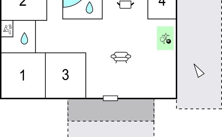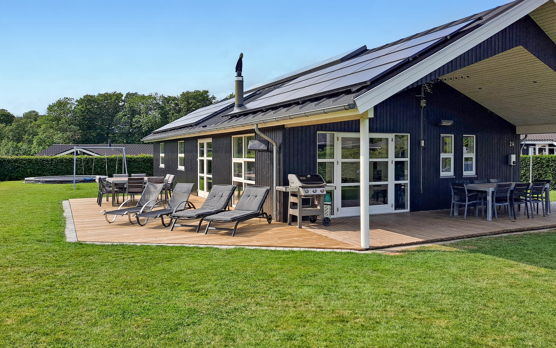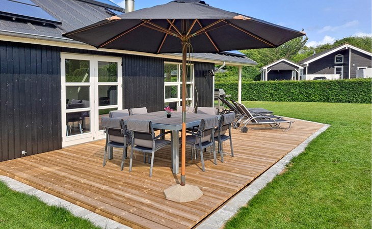 Mooi, goed onderhouden huis met lichte kamers en plafonds die naar de nok toe open zijn. De woonkamer staat in open verbinding met de keuken. Hier zorgen de dakramen in de nok voor heldere, lichtdoorstroomde ruimtes. Tot de moderne inrichting met veel kwaliteit behoort ook de grote whirlpool voor 6 personen, die bij aankomst al gebruiksklaar is en u met een massage verwelkomt. s Avonds zorgen vele spelletjes en de zoom, die voor uw kinderen met een grote zitzak, TV en de PlayStation3 met spelletjes, voor veel gezelligheid. Vanuit de woonkamer heeft u toegang tot het terras op het zuiden en het overdekte terras op het oosten, waar u goed tuinmeubilair en ligstoelen vindt. De trampoline in de tuin (1.4. -1.11.) mag u op eigen risico gebruiken, verder is er een zandbak en speelgoed. In de winter kunt u zelfs tussen de bomen door de zee zien, deze ligt op korte afstand van het huis en de vele paden nodigen uit tot een wandeling. Het nabijgelegen strand is kindvriendelijk en goed om te zwemmen en te vissen. Een uitdagende golfbaan ligt op 5 km van het huis. Hier heeft u ook een ruime keuze aan excursiebestemmingen. Haderslev, Aabenraa en Sønderborg zijn allemaal interessante, goed onderhouden steden. Er zijn onder andere de volgende attracties: Legoland, Gråsten Castle , Givskud Zoo en Danfoss Universe. U kunt ook naar de boot lopen voor een tochtje naar Barsø.