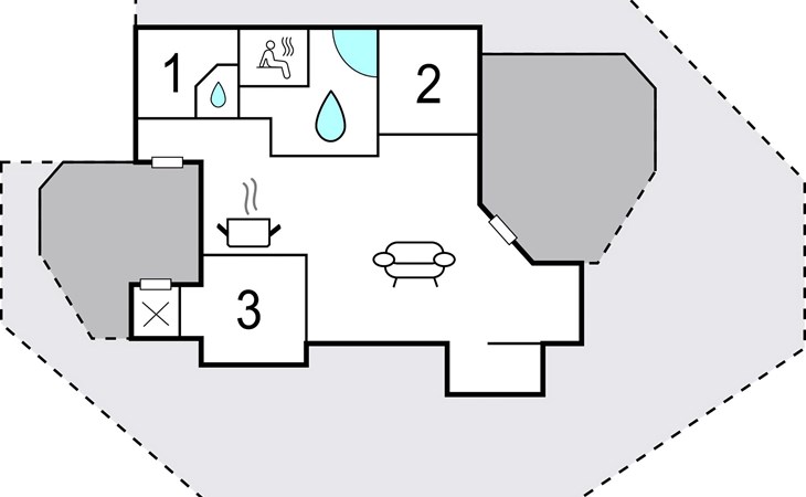Er zijn drie slaapkamers en een alkoof in de woonkamer die geschikt is voor extra slaapgelegenheid.