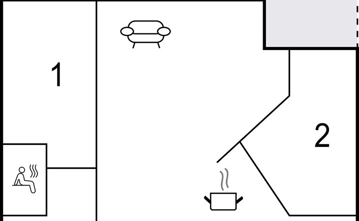 Uw vakantiewoning bevindt zich op de 1e verdieping van het complex. Het heeft twee aparte slaapkamers, elk met een comfortabel tweepersoonsbed. In het woongedeelte kunt u het zich gemakkelijk maken voor het gezellige licht van de bio-ethanolhaard. In het woongedeelte vindt u ook de slaapbank, die twee extra slaapplaatsen biedt. Een kinderbedje kan alleen in de woonkamer worden geplaatst, omdat er in de slaapkamer niet genoeg ruimte is.