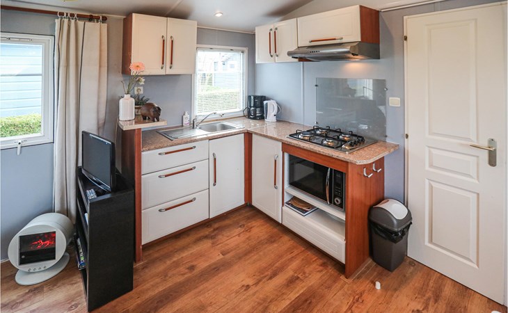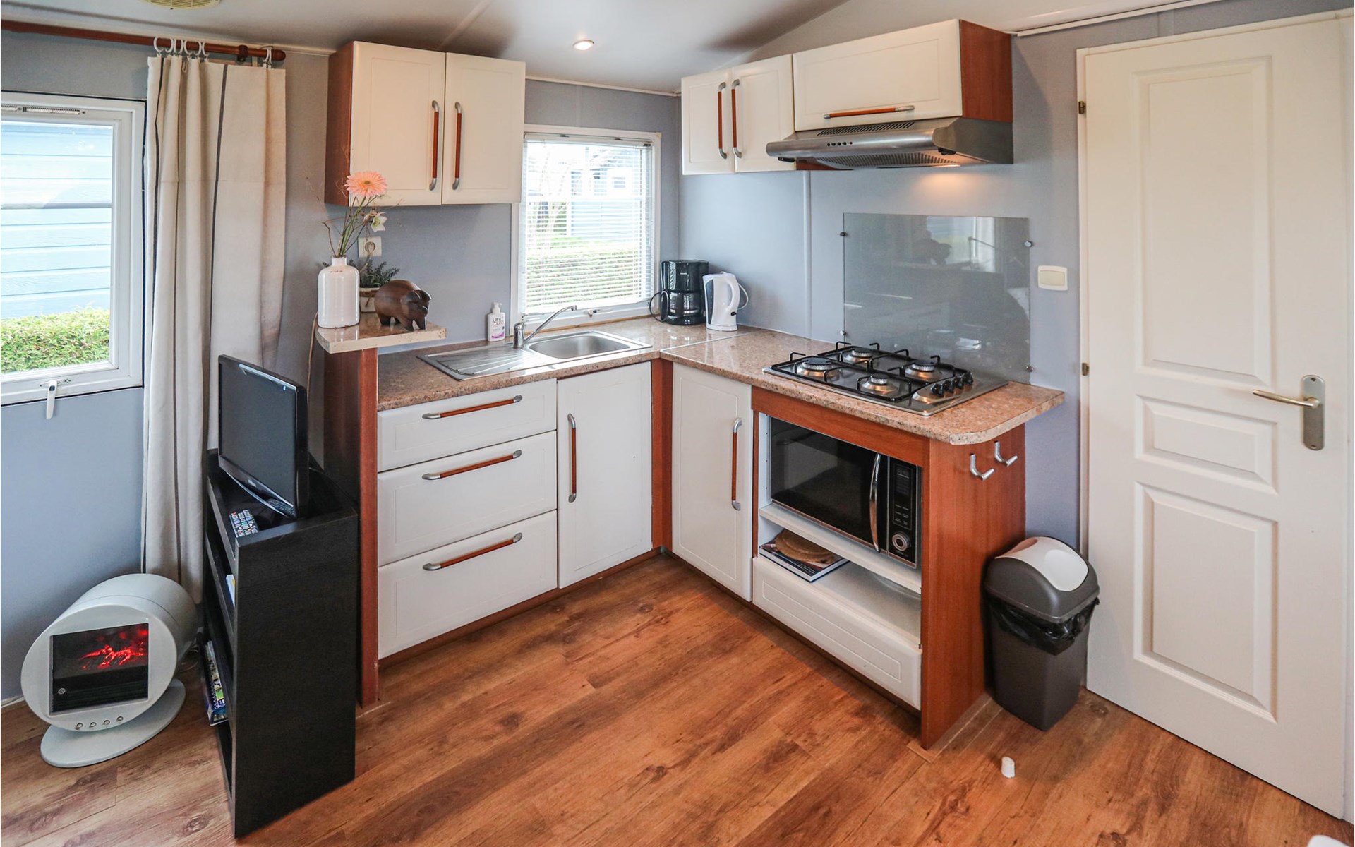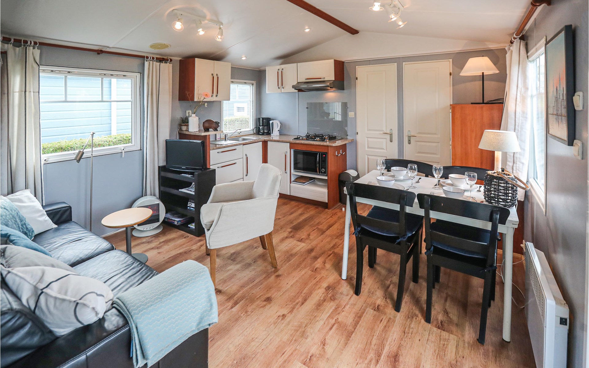 Dit mooie vakantiehuis voor 4 personen ligt aan de rand van het park op een rustig stukje grond. Volledig omheind, dus ideaal voor huisdieren of kinderen!