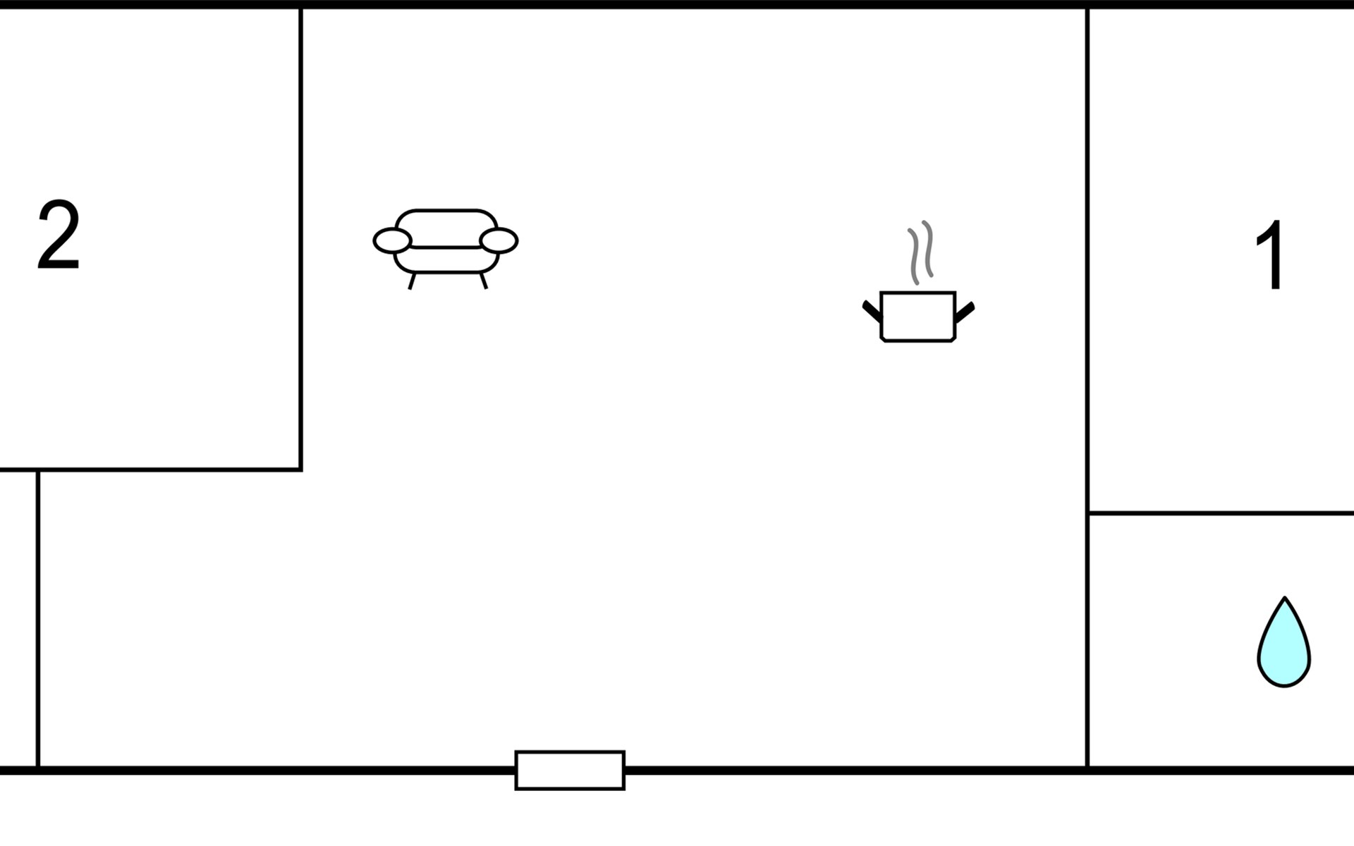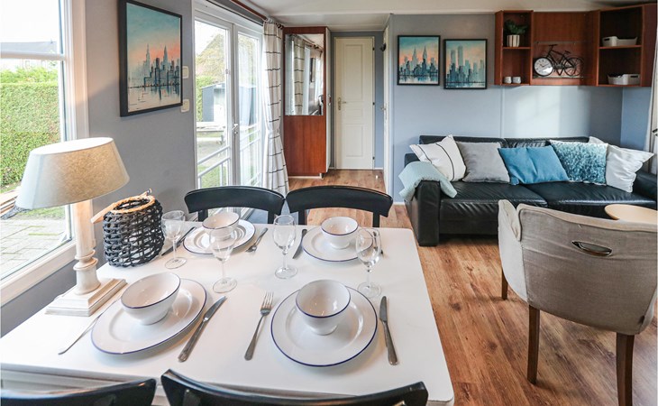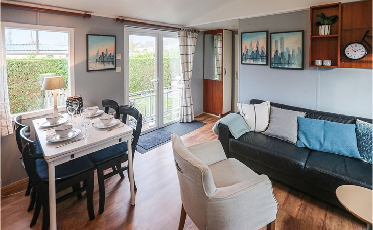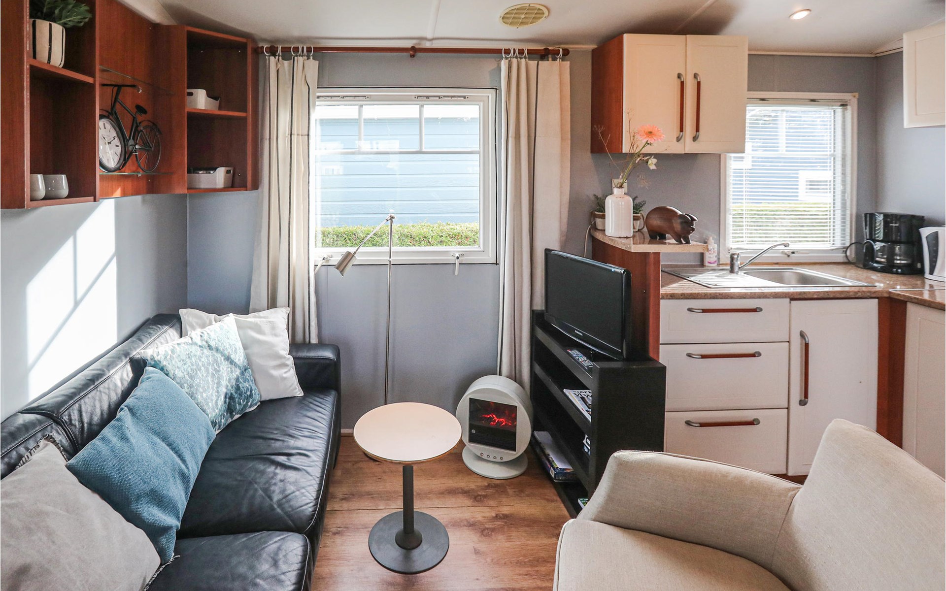 Het huis heeft twee slaapkamers, één met een tweepersoonsbed en één met twee eenpersoonsbedden. De gezellige woonkamer heeft een mooie eettafel, een zithoek en een open keuken. De badkamer is bereikbaar vanuit de woonkamer en de slaapkamer en heeft een douche en een wastafel. Een apart toilet bevindt zich aan de andere kant van de woonkamer.