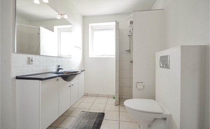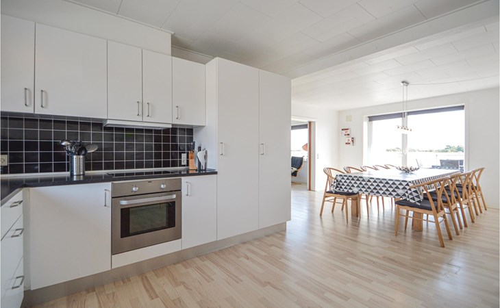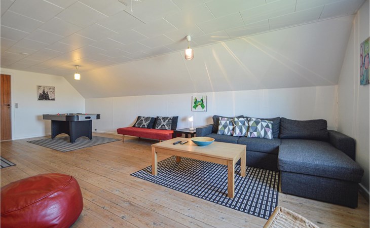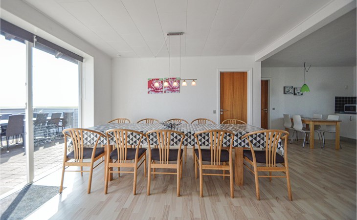 Het vakantiehuis is volledig gerenoveerd. Alle kamers in dit twee verdiepingen tellende huis zijn ingericht in lichte kleuren en alles is bijzonder vriendelijk en uitnodigend. De grote kamer op de eerste verdieping dient als woonkamer, waar je ook de tv vindt. Op de begane grond heb je de eetkeuken en direct ervoor een omheind terras waar je heerlijke uren buiten kunt doorbrengen. Vanaf hier heb je een prachtig uitzicht op het wad en de veerboot die regelmatig tussen Rømø en Sylt vaart. Er is een klimrek, een glijbaan en een trampoline in de tuin. Kystvejen ligt ten oosten van het huis.