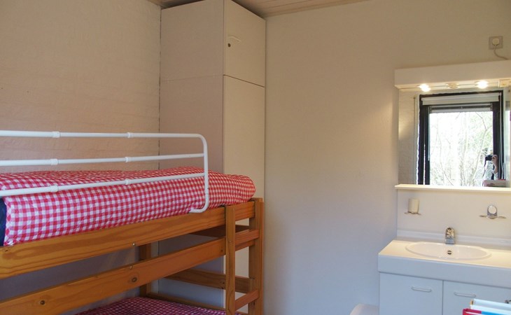 U komt het vakantiehuis binnen in de hal die toegang geeft tot een kleine tweepersoonsslaapkamer (bed140x190) en een nieuwe (dec 2021) badkamer met wastafel, wc en douche. Vervolgens komt u in de woonkamer, die comfortabel is ingericht. Er staat een grote, houten eettafel, zithoek en gashaard. De open keuken is voorzien van alle gemakken, o.a. een vaatwasser en magnetron. Vanuit de woonkamer loopt u via de schuifpui zo het terras op. Tevens is er vanuit de woonkamer nog een tweede slaapkamer met stapelbed bereikbaar en een tweede halletje met de trap (voor Duitse gasten, ietwat steil) naar de etage. Hier bevinden zich de tweede, nieuwe (dec 2021) badkamer met wastafel en douche en de derde en vierde slaapkamer, beiden met een tweepersoonsbed, (160x200 en 180x200). Er is een derde wc in het bijgebouwtje waar ook de wasmachine staat. (in de winter niet bruikbaar ivm bevriezing waterleiding)