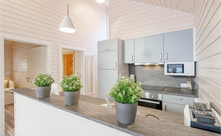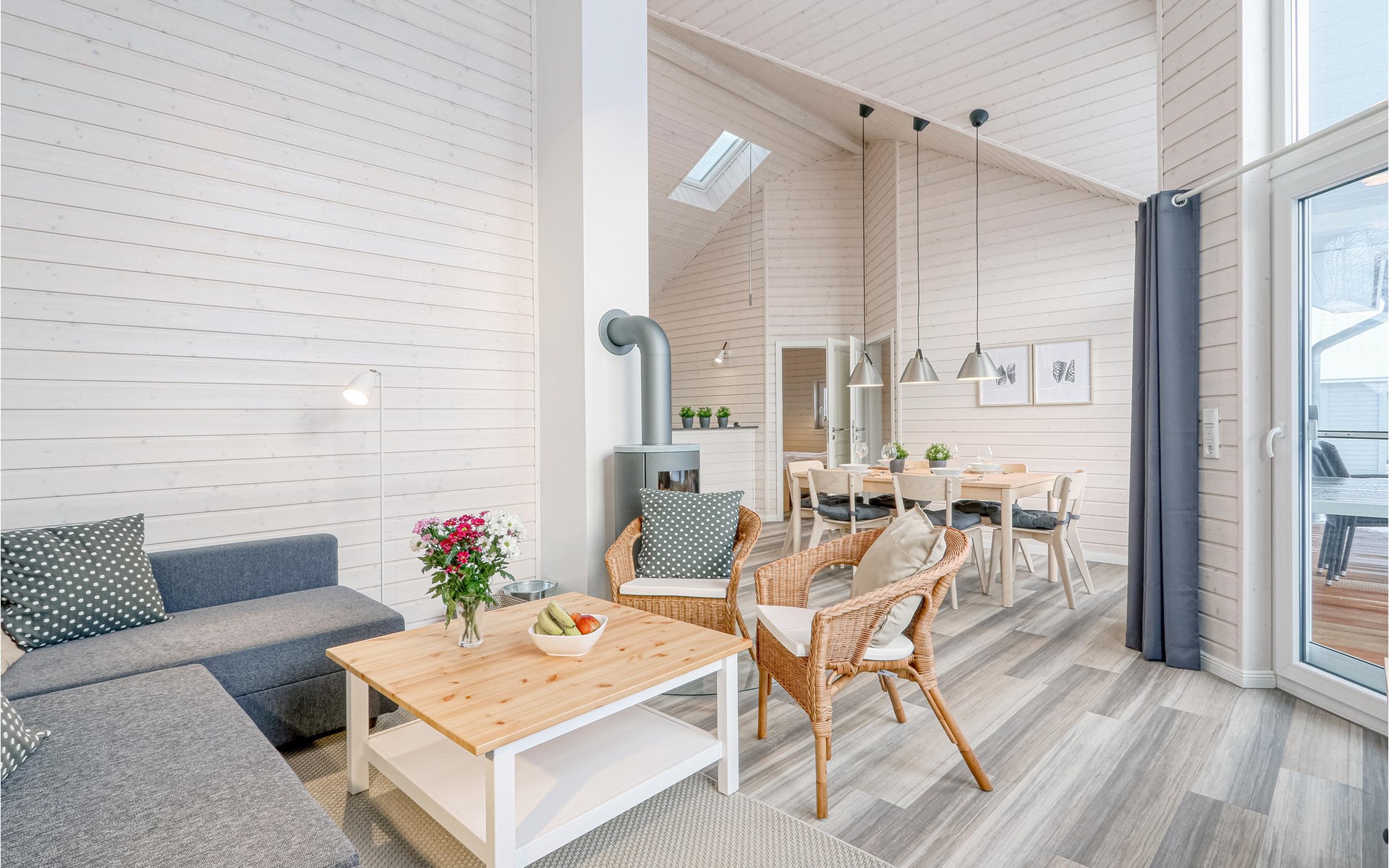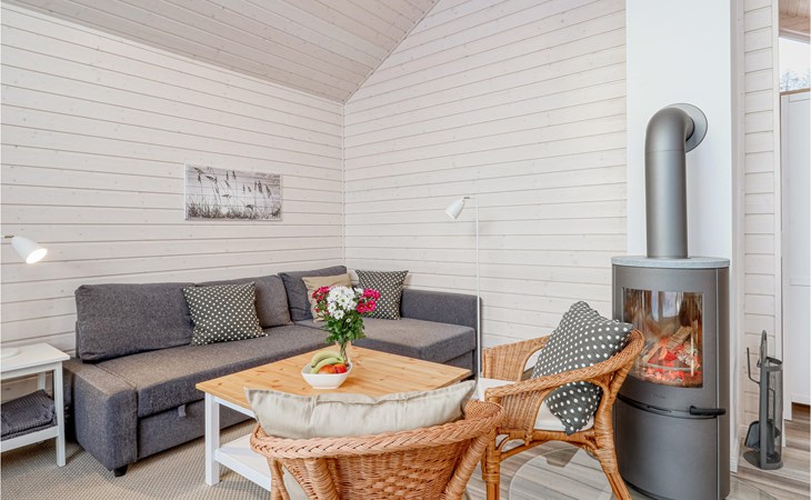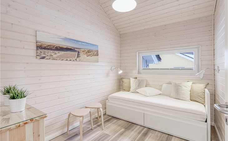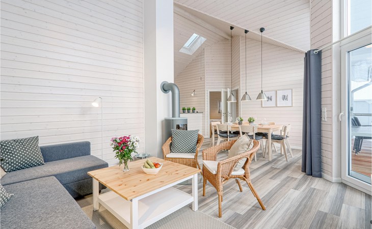 Breng een ontspannen vakantie door in dit uitnodigende en moderne houten vakantiehuis in het vakantiedorp Wadersee. Ontspan in de sauna of knus bij de houtkachel in de woonkamer als het buiten wat frisser is, de eenvoudige en moderne inrichting van het vakantiehuis zorgt ervoor dat je je kunt concentreren op de essentie: een zorgeloze tijd met je geliefden! Het huis heeft 3 slaapkamers. In de eerste slaapkamer staat een tweepersoonsbed. De tweede slaapkamer heeft twee eenpersoonsbedden, die ook tegen elkaar geschoven kunnen worden tot een tweepersoonsbed. In de derde slaapkamer staat een uitschuifbaar bed, dat alleen gebruikt mag worden door één persoon voor langere verblijven; voor kinderen en korte vakanties kunnen er ook twee personen gebruik van maken. De slaapbank in de woonkamer biedt twee extra slaapplaatsen.
