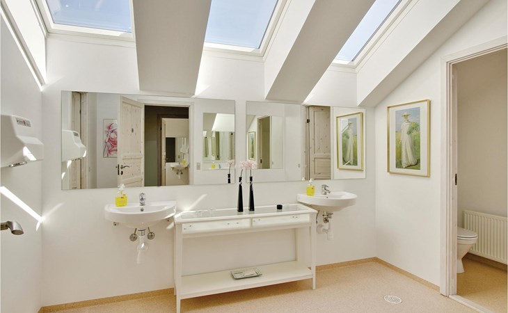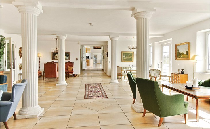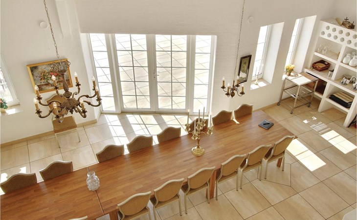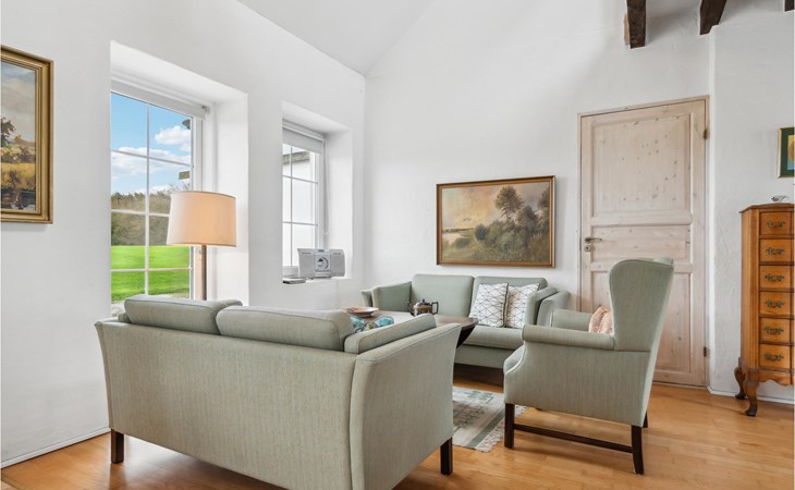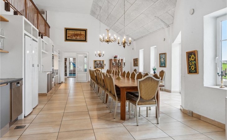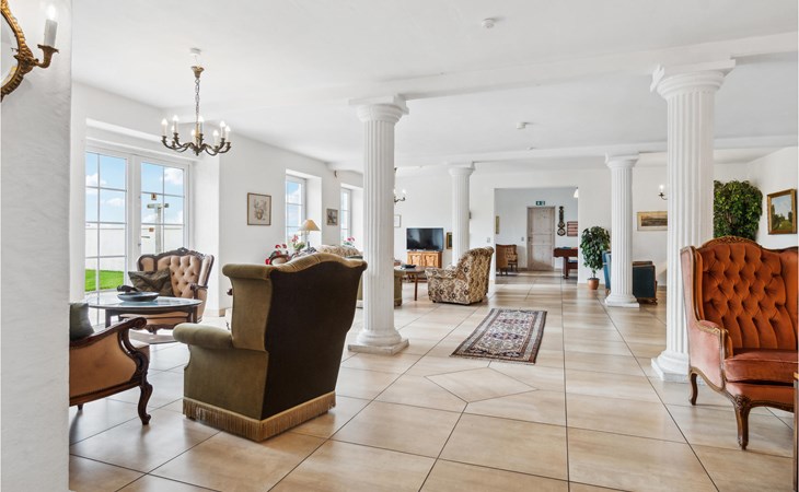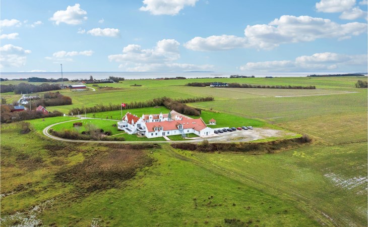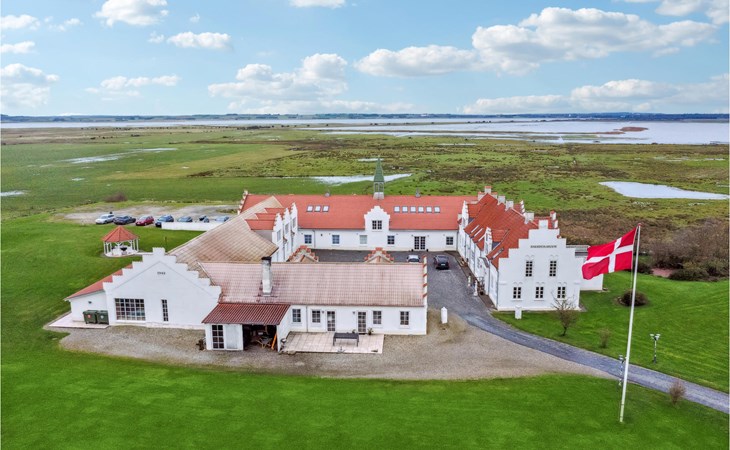 In de indrukwekkende natuur van Noord-Jutland, tussen de Noordzee en het Limfjord, ligt deze fantastische vierkante boerderij van 1000 vierkante meter in kloosterstijl met een trapgevel en torenspits, waarvan de interessante geschiedenis teruggaat tot 1604. De wens van de gasten naar luxe en comfort werd op een bijzondere manier vervuld tijdens de volledige renovatie van het pand, maar de renovatie werd met zorg uitgevoerd en de historische sfeer werd behouden.