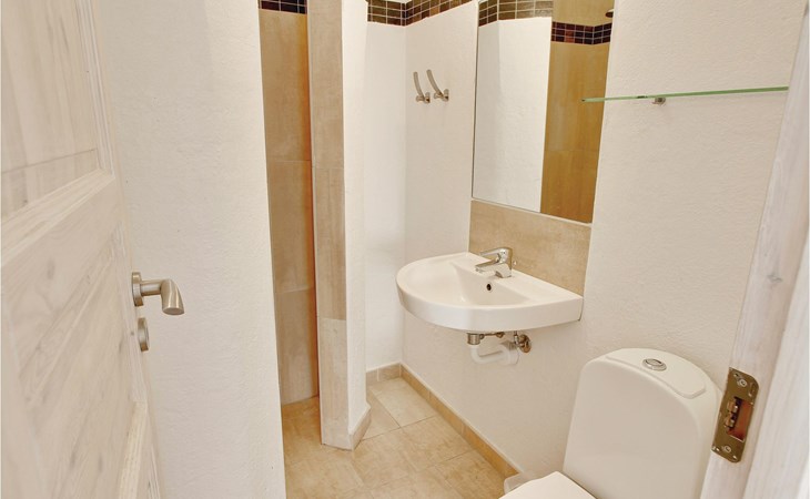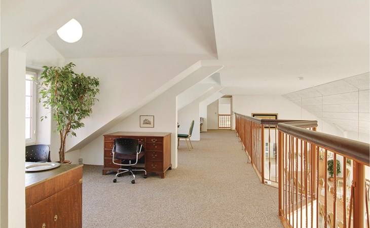 Alle kamers in het huis, op één na, bevinden zich op hetzelfde niveau. Eén zitkamer bevindt zich boven het kook- en eetgedeelte, waar een plafond is geïnstalleerd, en één kamer heeft een open plafond tot in de nok.