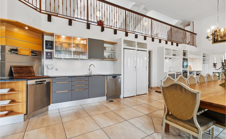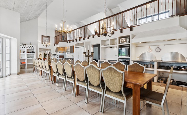 De gezellige sfeer van de eetkeuken nodigt uit tot gezellig samen eten. De keuken is functioneel uitgerust met 8 kookzones, 2 ovens, 2 koelkasten en 2 vaatwassers.
