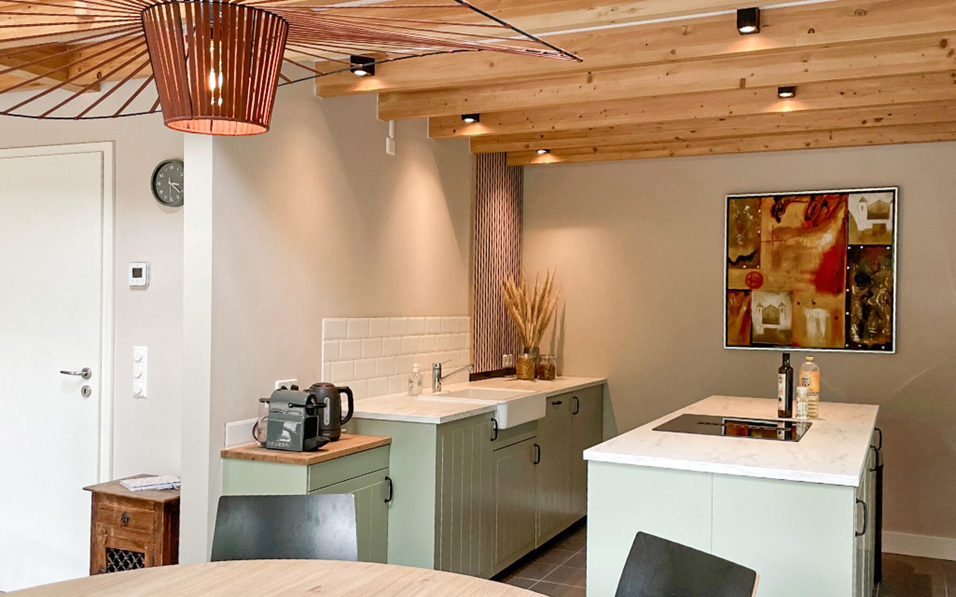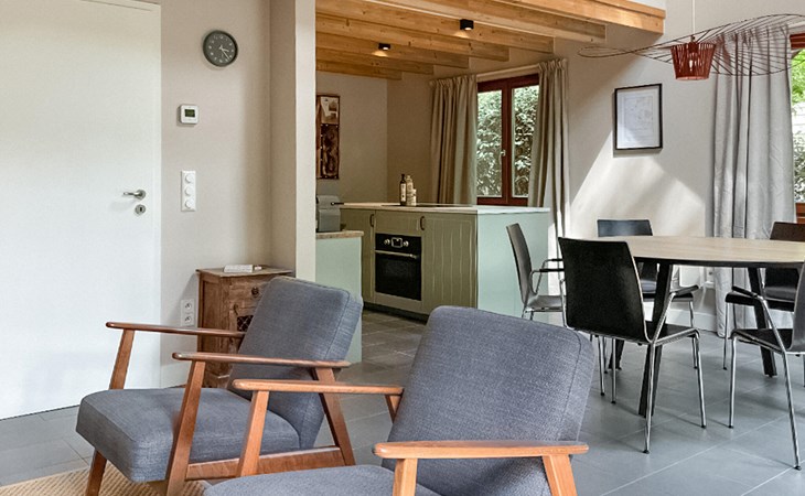 Je vakantiehuis ligt midden in het groen en is ook de ideale uitvalsbasis voor uitstapjes in de omgeving. In Rekem, aan de rand van Lanaken en op slechts enkele kilometers van Maastricht, wacht je een goed ingericht vakantiehuis voor ontspannen dagen. Maak het jezelf gemakkelijk in de lichtovergoten woonkamer. De open indeling met hoogwaardig meubilair, stijlvolle details en open haard creëert een gezellige sfeer. Gebruik de goed uitgeruste keuken om samen te koken en geniet van je maaltijden aan de grote eettafel met uitzicht op het groen.