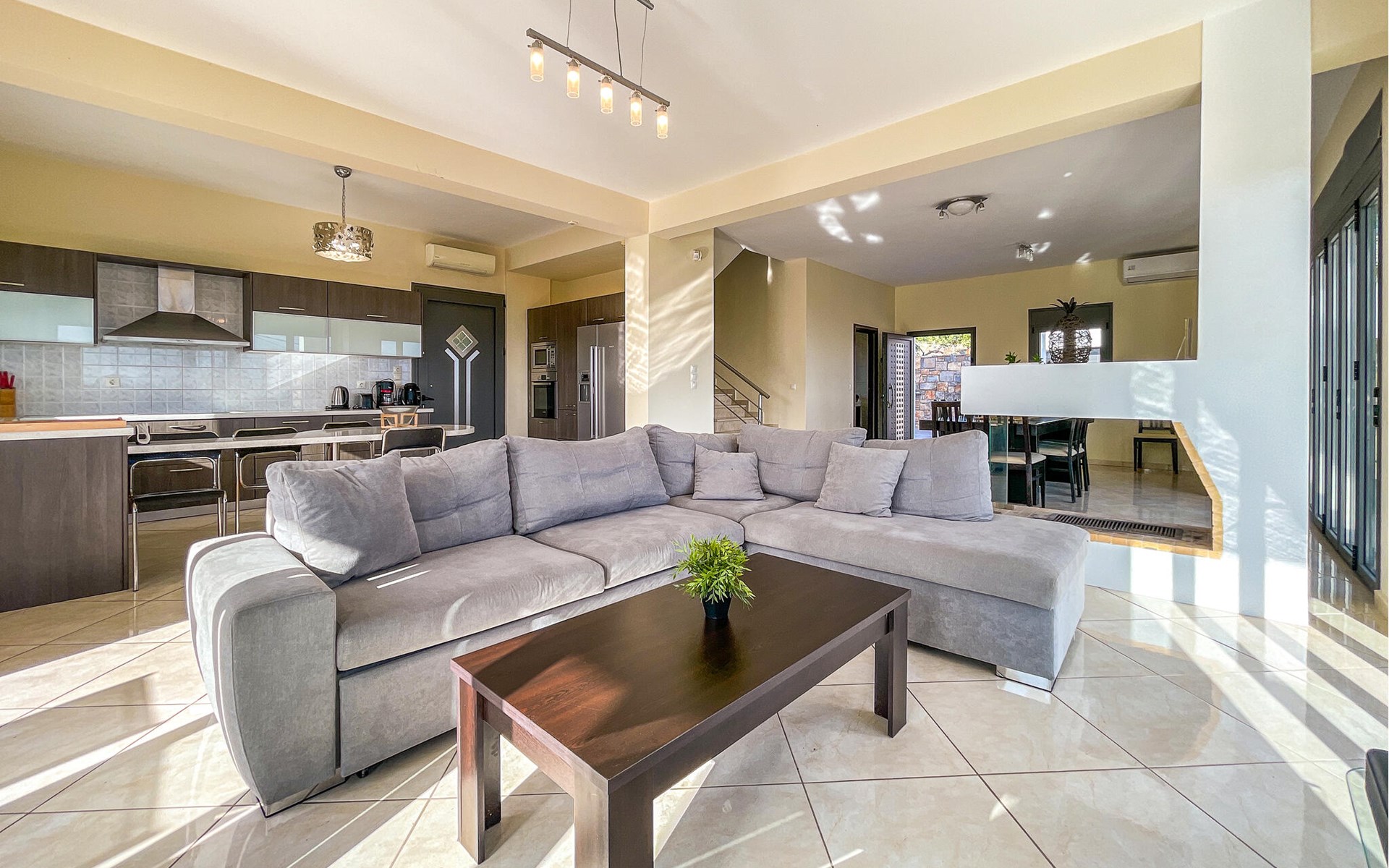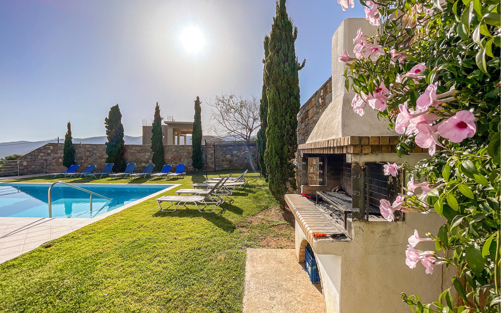 Deze luxe villa ligt in de buurt van het dorp Milatos. Alle kamers zijn ruim en bieden een fantastisch uitzicht op de zee. Een stenen muur omringt het pand. Ontspan in de 600 m² grote tuin met gazon, kruiden, bloemen en een overloopzwembad. Dit vakantieverblijf is de perfecte keuze voor gezinnen van meerdere personen of een verblijf met de beste vrienden. De villa biedt zes ruime woonkamers, en van de drie grote badkamers is er één uitgerust met een bubbelbad. Op de vierde verdieping is er een grote slaapkamer, en op het niveau direct daaronder kunt u drie grote slaapkamers en een badkamer verwachten. Op de onderste verdieping bevinden zich twee slaapkamers en een badkamer. De middelste verdieping omvat de open woonkamer, een badkamer en de keuken met toegang tot het zwembad, het terras, de barbecue en de eethoek buiten. Bereid uw barbecuemaaltijd op de grote stenen grill en verzamel uw troepen rond de twaalfpersoons eettafel. De GKR218 is de ideale uitvalsbasis voor uw vakantie op Kreta. U kunt zich verheugen op een fantastische natuur, geweldige stranden en tal van restaurants met specialiteiten van het eiland.