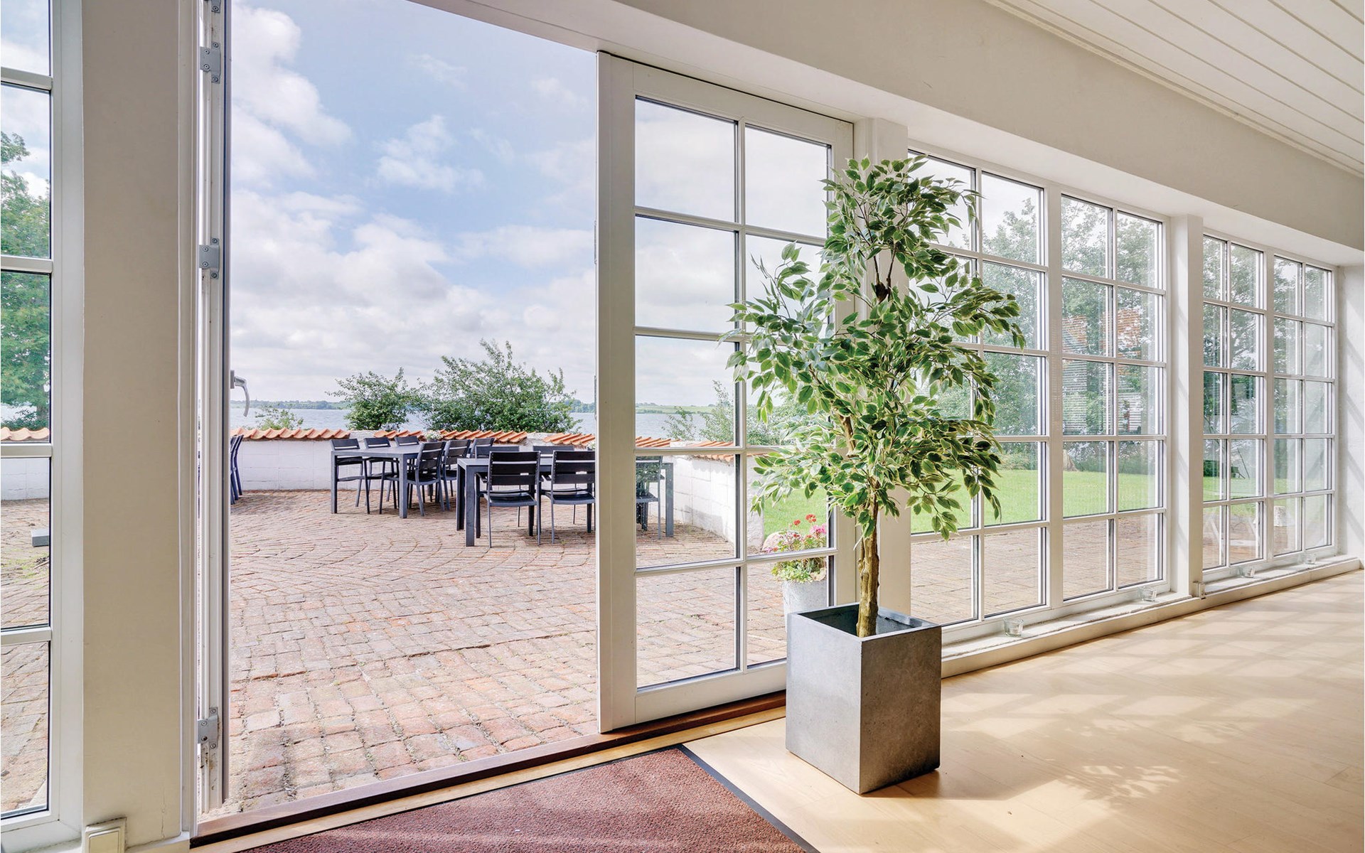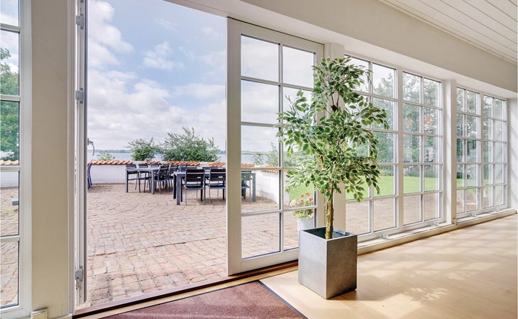 Dompel jezelf onder in het zwembadgedeelte met een verwarmd zwembad, een waterglijbaan, een zwemtrainer, een whirlpool en een sauna. Een glazen doorgang verbindt op harmonieuze wijze het zwembadgedeelte met het hoofdgebouw en biedt toegang tot een afgeschermd terras met een adembenemend uitzicht op het geluid. Het grote natuurlijke perceel biedt directe toegang tot het strand, een kleine vissershaven en een jachthaven voor ontspannende uren. Geniet van het uitzicht vanaf het grote terras op het zuiden, dat vrijwel direct aan het water ligt, of ontspan op het dakterras op de bovenste verdieping. Het eiland Als heeft een lange kustlijn, fijne zandstranden en prachtige bossen.