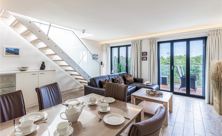 De vakantiewoning belooft een hoogwaardige sfeer van genot en welzijn. Exclusieve meubels zijn perfect op elkaar afgestemd en belichamen een levensstijl die harmonie en elegantie combineert. Elk meubelstuk en woonaccessoire is zorgvuldig geselecteerd en niets is aan het toeval overgelaten. Er is speciale aandacht besteed aan een gezond binnenklimaat en allergievriendelijke materialen.