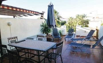 Mooi vakantiehuis in een nieuw, afgesloten complex met een geweldig gemeenschappelijk zwembad. Het terras op de bovenste verdieping biedt een prachtig uitzicht op de zee en de bergen en heeft ook een barbecueplaats, douche en ligstoelen. Op de onderste verdieping bevindt zich de woonkamer met toegang tot de overdekte veranda en het terras. Nerja is een relatief rustig gebied in tegenstelling tot de drukte van het westelijke deel van Málaga. Bezoek de beroemde grotten van Nerja en de unieke baaien, die echter alleen te voet bereikbaar zijn. Hier kunt u genieten van de uitzonderlijke natuur en het beste klimaat van Zuid-Spanje, zowel in de winter als in de zomer. Verken de prachtige kustplaatsen van Almeria of ga skiën in de Sierra Nevada bij Granada. Het extreem contrasterende landschap van de regio zorgt voor een unieke vakantie-ervaring! Nerja biedt een verscheidenheid aan bars en restaurants met de typische tapas van de streek. Als u met meerdere gezinnen of grotere groepen reist, kan EAN846 ernaast ook gehuurd worden, met een capaciteit voor in totaal 14 personen.