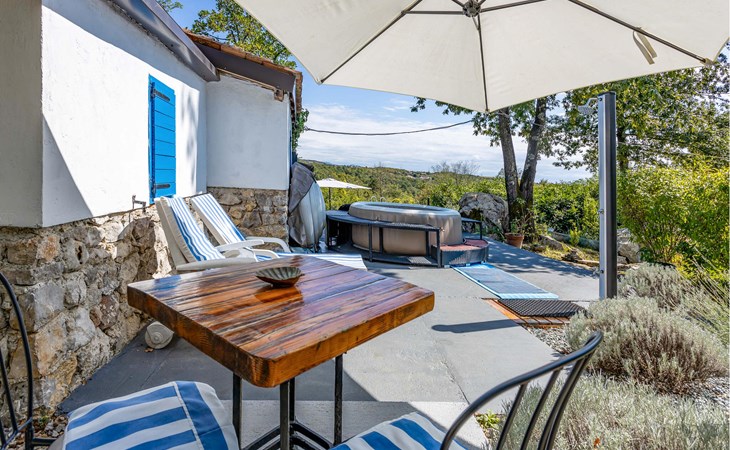 Uitnodigende vakantiewoning met buitenwhirlpool.