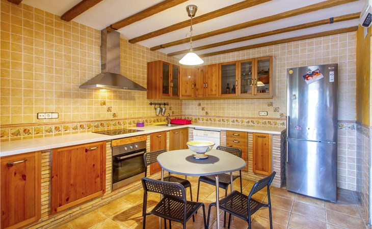 Hier kun je een ontspannen vakantie doorbrengen met maximaal 6 personen, want dit huis biedt je 3 ruime slaapkamers en 3 badkamers, zodat niemand te lang hoeft te wachten. Het hele huis heeft een tegelvloer, en je zult ook meteen het rustieke balkenplafond opmerken, dat een ongelooflijk aangename woonsfeer creëert. In de woonkamer kun je bij de open haard zitten en de gezellige warmte voelen in de koelere maanden of genieten van de koele tegels en airconditioning in warme temperaturen. Het is gelegen in een rustige omgeving en biedt je genoeg plekken om te ontspannen en tot rust te komen voor je ideale vakantie ver weg van de drukte van de stad. Zelfs je viervoeters zijn welkom om vrij rond te lopen in de omheinde tuin en zich uit te leven met de kinderen.