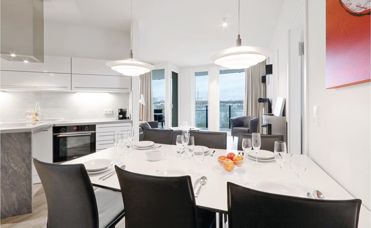 Uw vakantiewoning bevindt zich op de 4e verdieping van het complex, waardoor u geniet van een uniek uitzicht. Vanaf hier kijkt u uit over de Priwall, het zandstrand en de havenuitgang met de passerende schepen. Het heeft drie aparte slaapkamers, elk met een gezellig tweepersoonsbed. In het woongedeelte kunt u het zich gemakkelijk maken voor het gezellige licht van de bio-ethanolhaard. Een kinderbedje kan alleen in de woonkamer worden geplaatst, omdat er in de slaapkamer niet genoeg ruimte is.