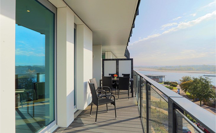 Op het balkon, dat op het zuiden ligt, kunt u genieten van de frisse Oostzeelucht en de zon. Vanaf hier kijkt u uit over de Priwall, het strand en de monding van de Trave. Ontspan met het uitzicht op de passerende schepen. Tuinmeubilair is hier beschikbaar voor gezamenlijke maaltijden met de familie. Tegen een kleine borg kunt u bij de receptie een verrekijker lenen om de drukte van de omgeving en de natuur te observeren.