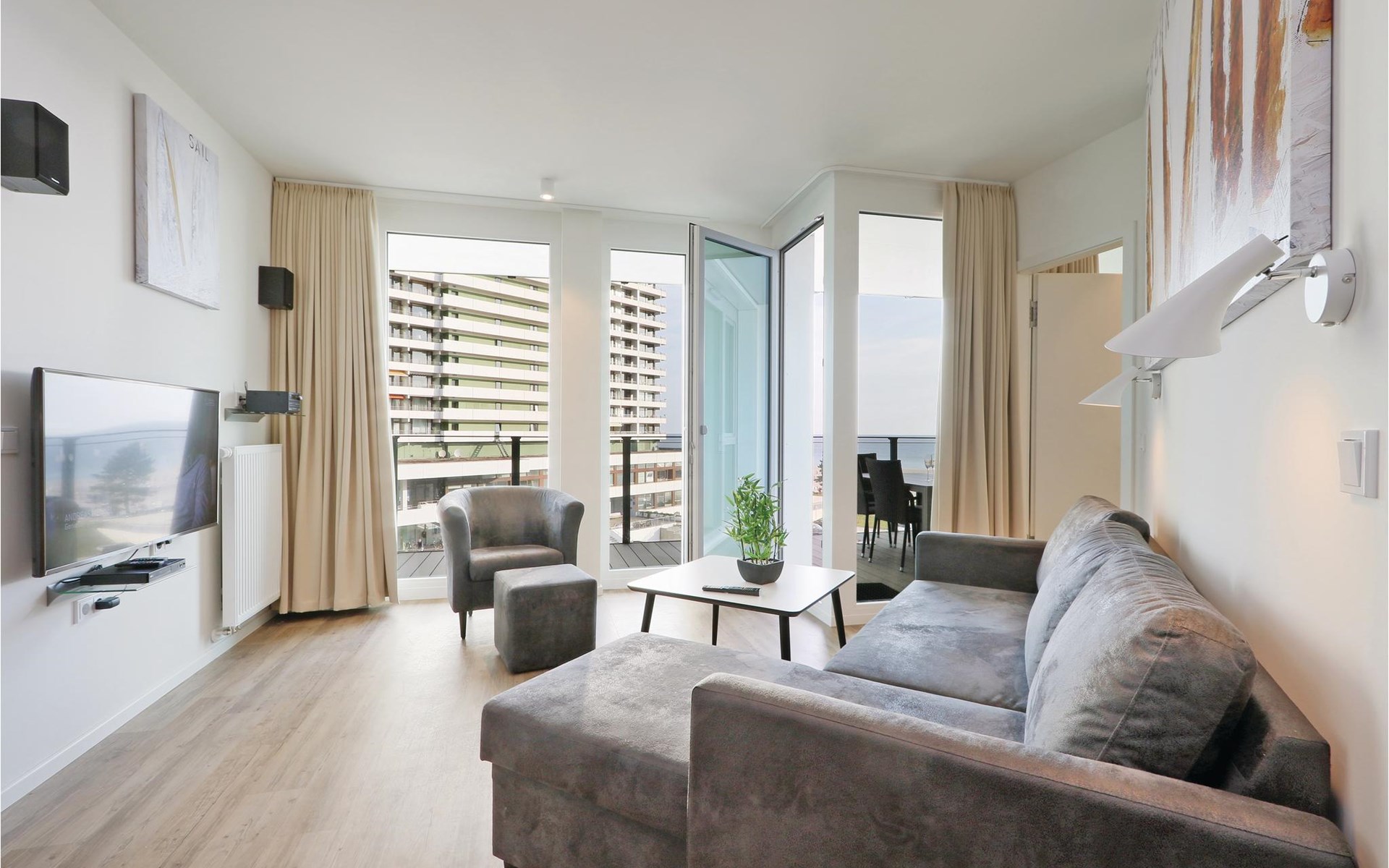 Op het balkon kunt u genieten van de frisse Oostzeelucht en het geluid van de golven of samen met de familie eten. Geniet van het uitzicht op de promenade en het strand, helemaal tot aan de Oostzee. Tegen een kleine borg kunt u bij de receptie een verrekijker lenen, waarmee u de drukte in de omgeving en de natuur kunt observeren.
