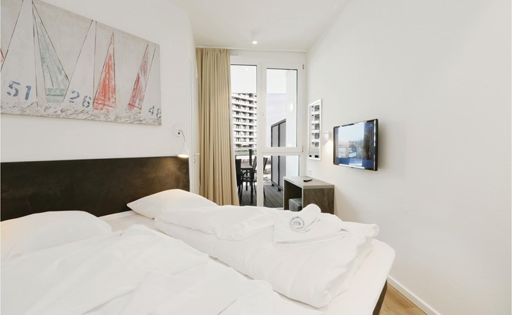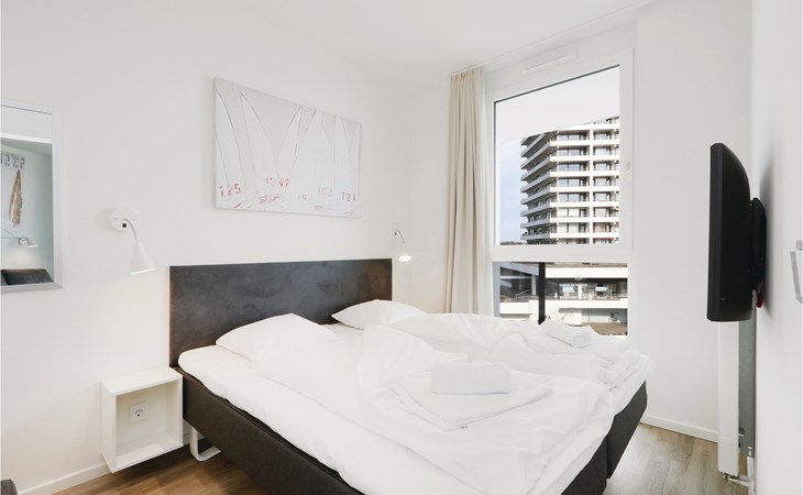 Uw vakantiewoning bevindt zich op de 3e verdieping van het complex, waardoor u kunt genieten van een uniek uitzicht. Vanaf hier kijkt u uit over de stad, de boulevard en het prachtige zandstrand tot aan de Oostzee. Het heeft twee aparte slaapkamers, elk met een gezellig tweepersoonsbed. In het woongedeelte kunt u het zich comfortabel maken voor het gezellige licht van de bio-ethanol open haard. In het woongedeelte vindt u ook de slaapbank, die twee extra slaapplaatsen biedt. Een kinderbedje kan alleen in de woonkamer worden geplaatst, omdat er in de slaapkamer niet genoeg ruimte is.