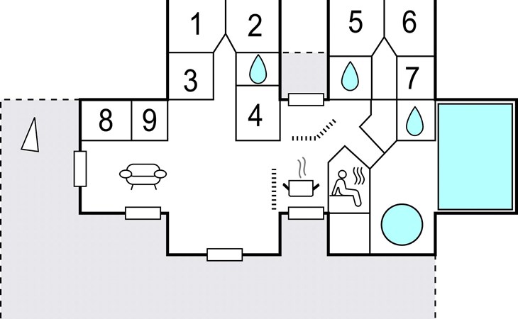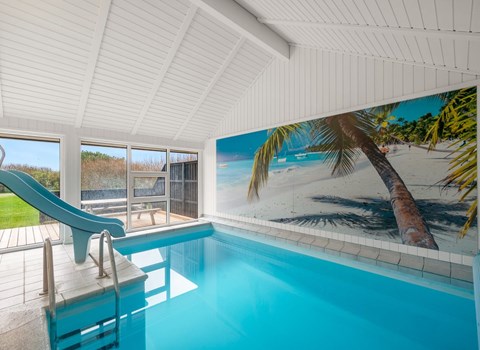 De mooie woonkamer staat in open verbinding met de goed uitgeruste keuken, waar onder andere twee koelkasten staan en een grote eettafel met plaats voor 22 personen. Het zwembadgedeelte biedt een zwembad van 24 m², evenals een whirlpool voor 5 personen en een ruime sauna voor meerdere personen. Het terras ligt op het zuiden en is ingericht met mooi tuinmeubilair en een barbecue. Verder is er een eigen beachvolleybalveld en speeltoestellen voor uw kinderen.