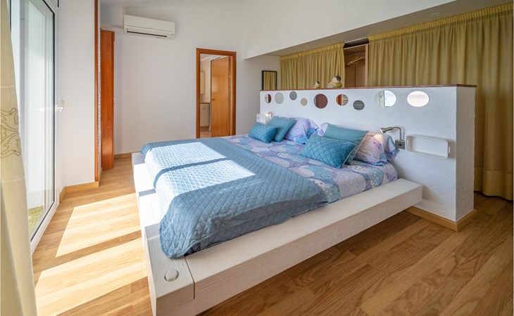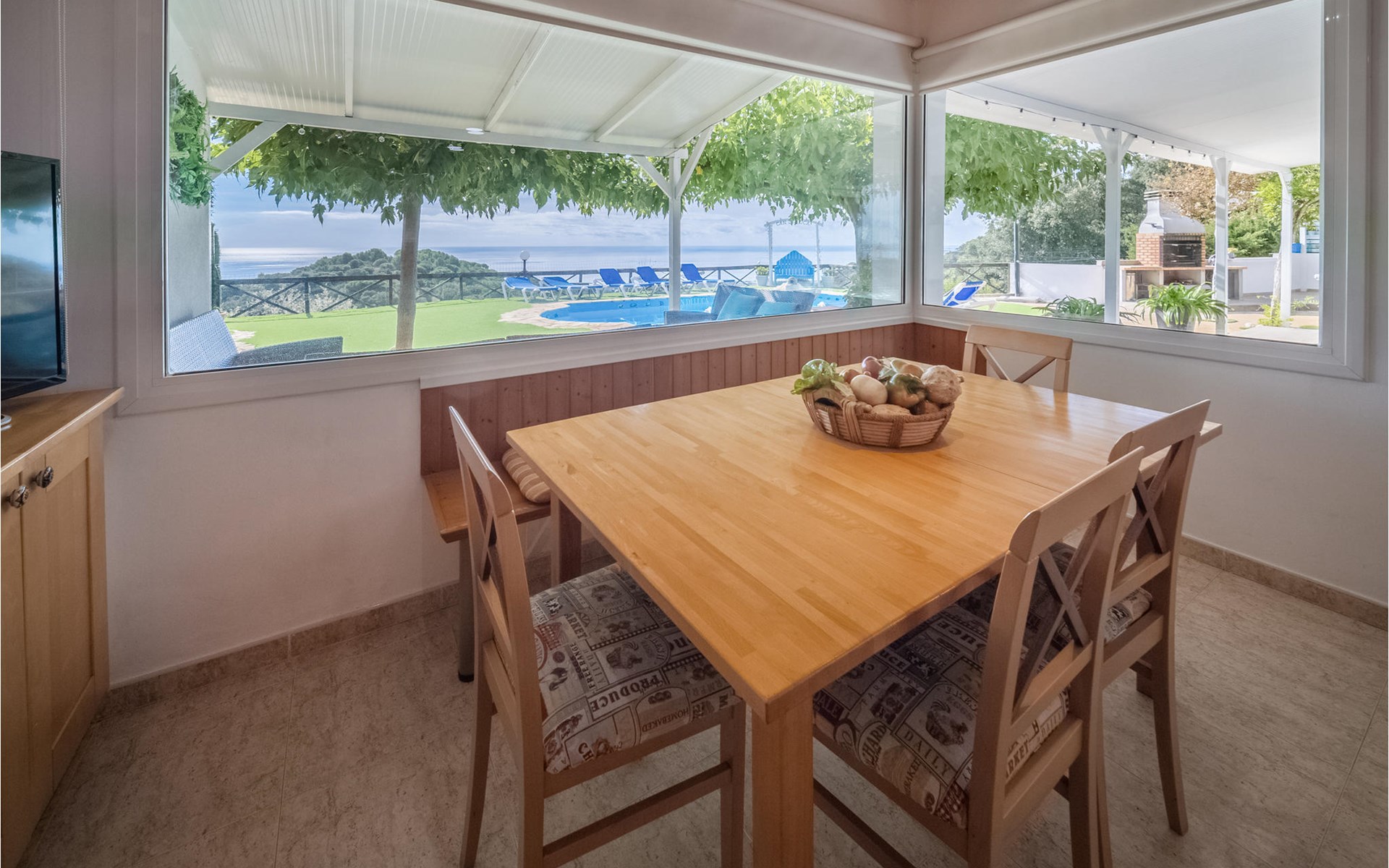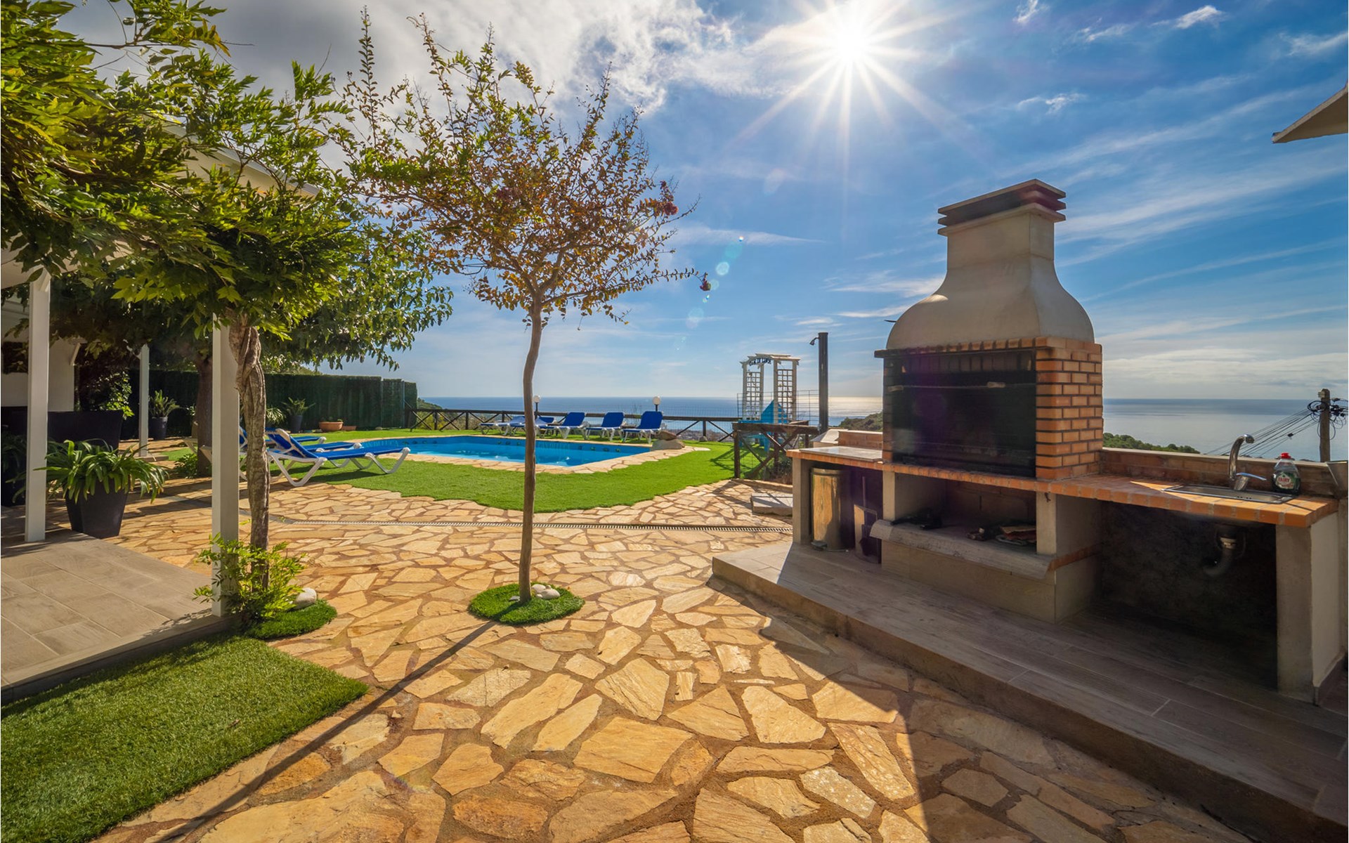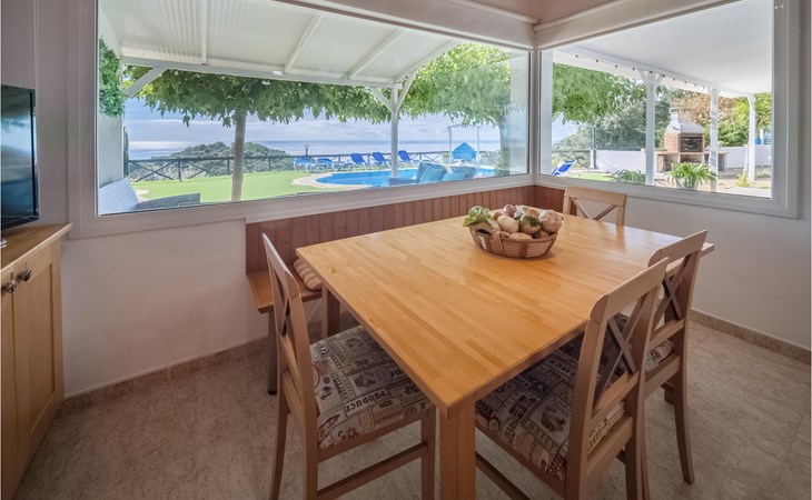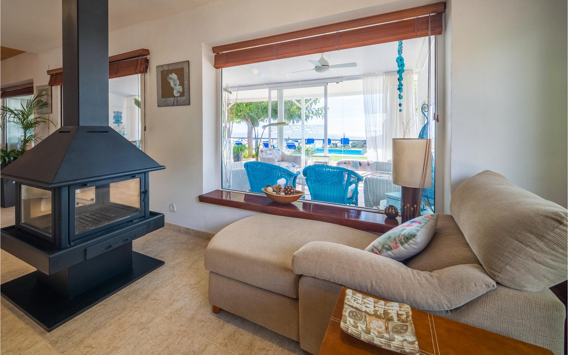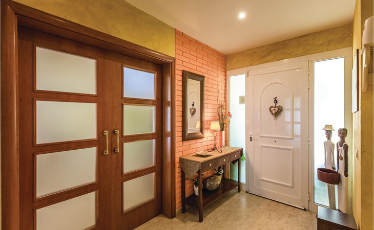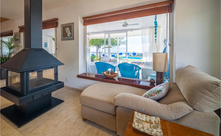 Het interieur is zeer modern met meubilair van hoge kwaliteit. Ook de keuken is volledig uitgerust en laat niets te wensen over. De ruime woonkamer heeft een moderne open haard voor de koudere seizoenen. Het terras heeft toegang tot de tuin met barbecue en zwembad.
