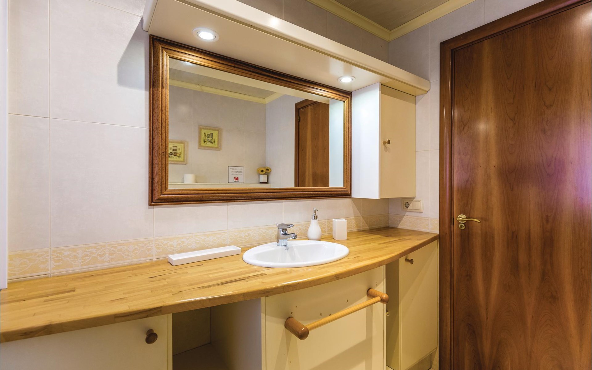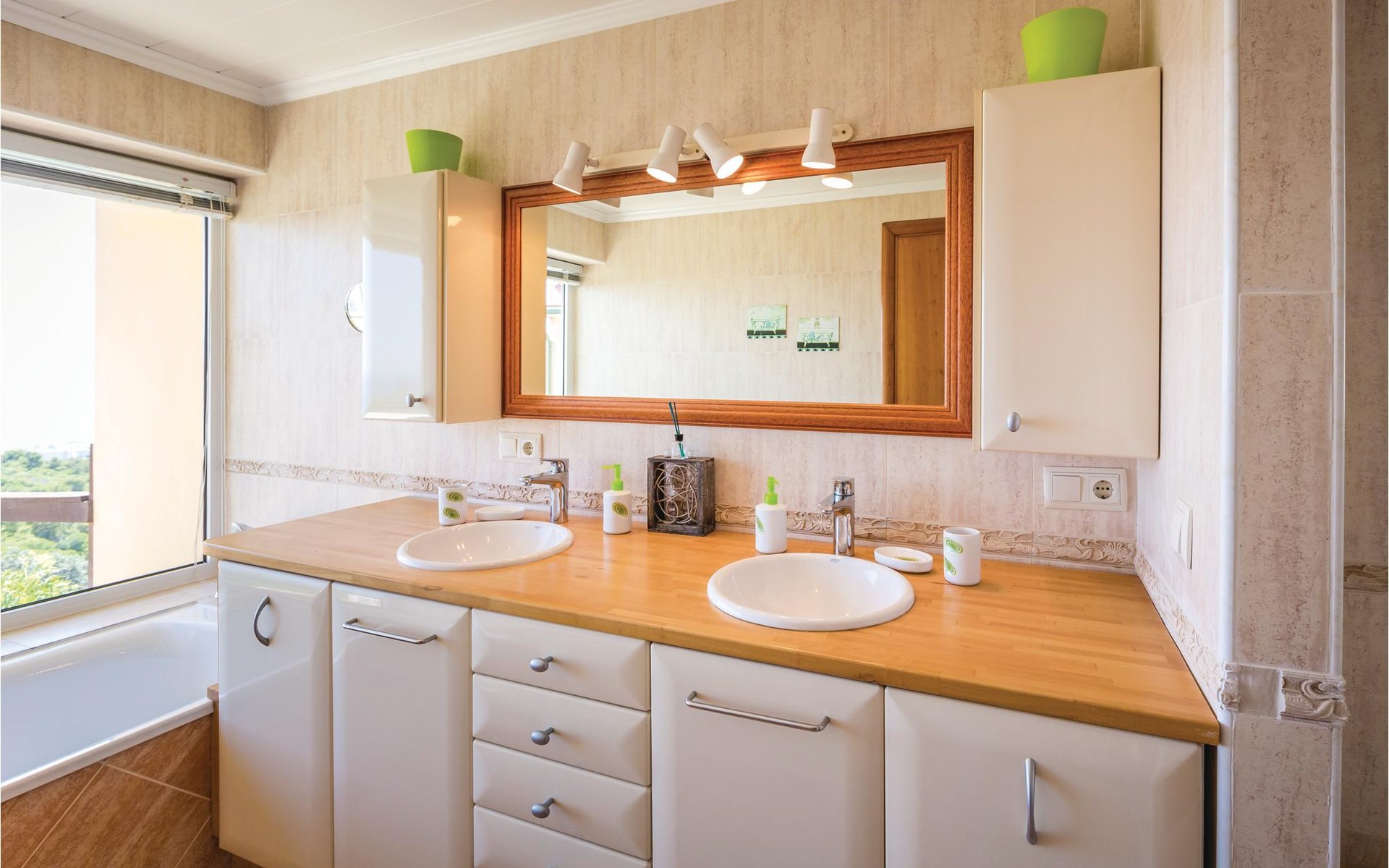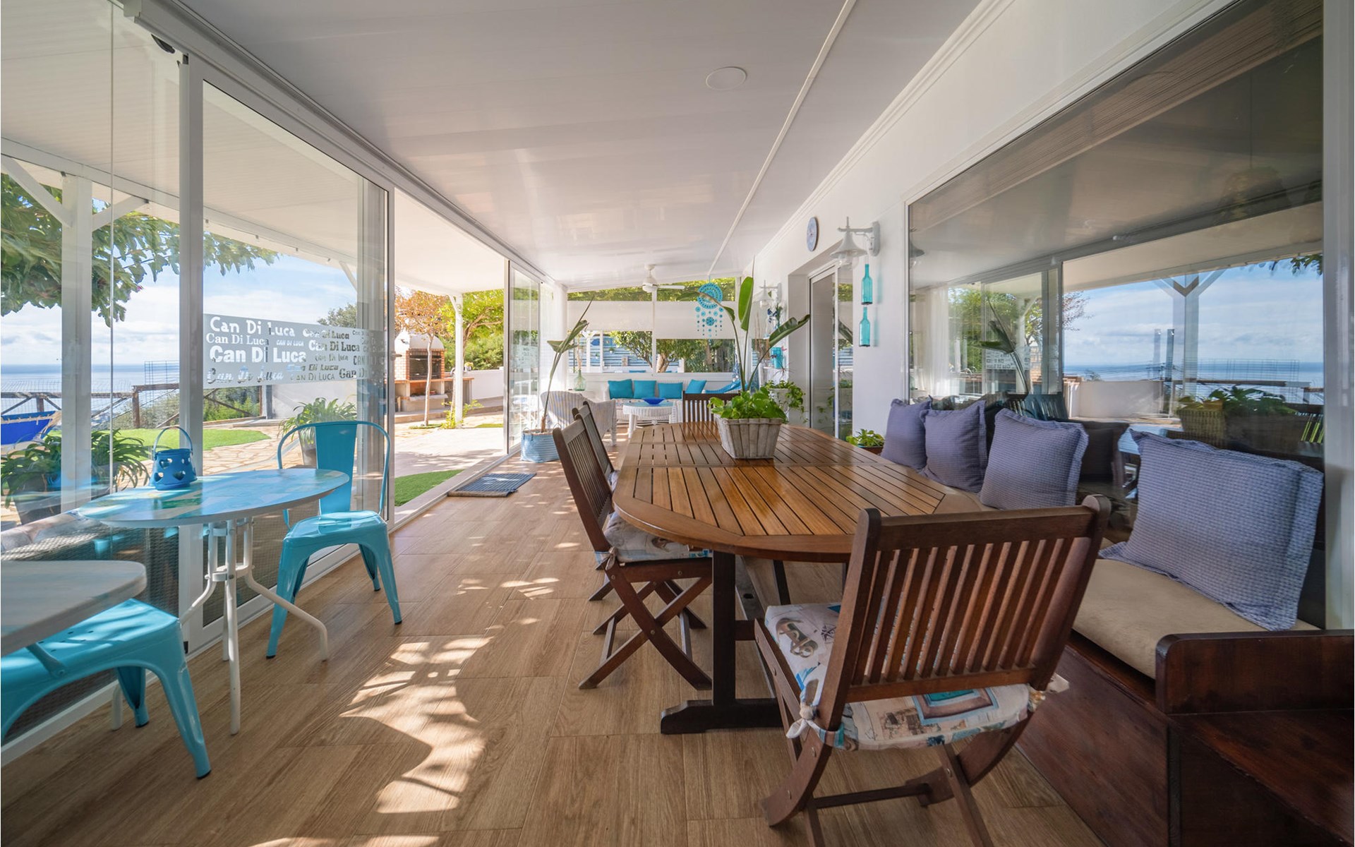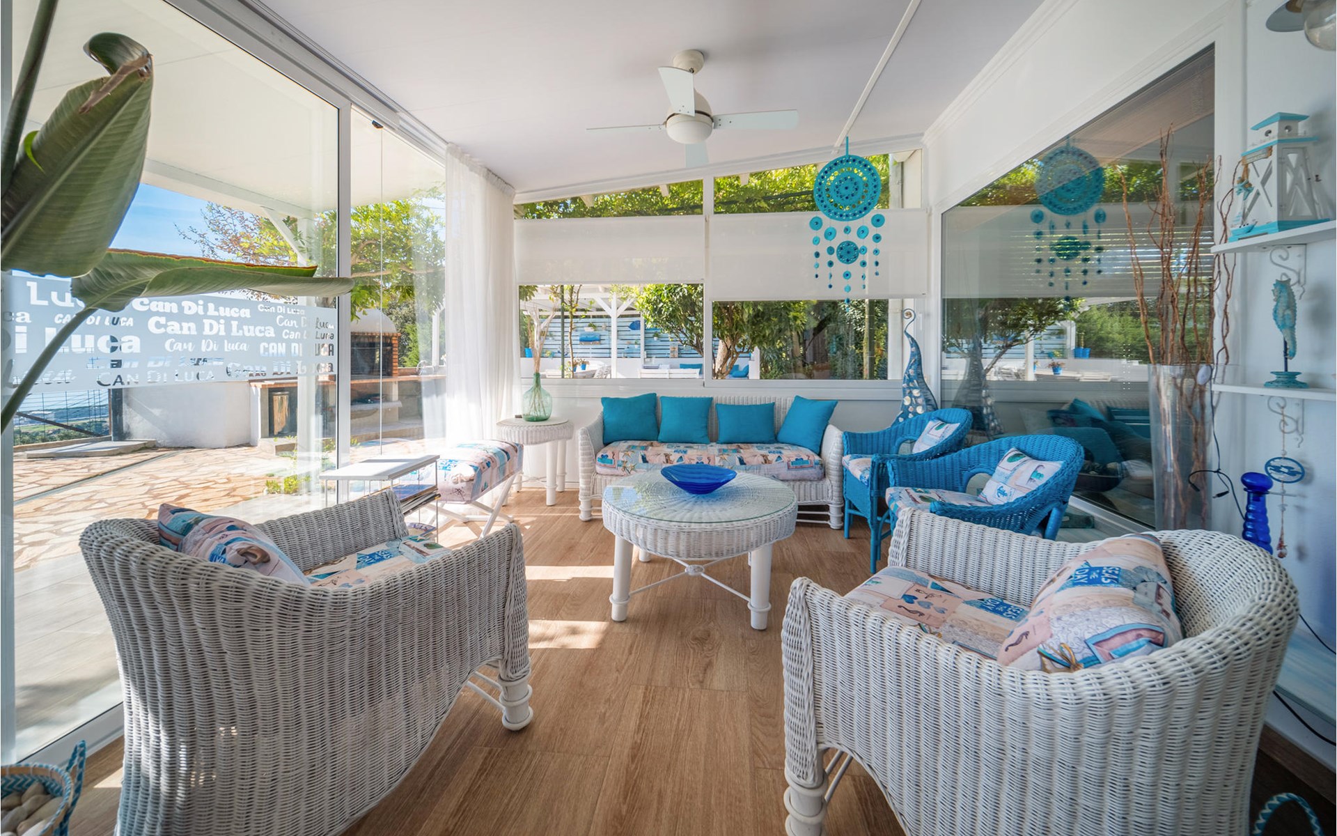Het interieur is zeer modern met meubilair van hoge kwaliteit. Ook de keuken is volledig uitgerust en laat niets te wensen over. De ruime woonkamer heeft een moderne open haard voor de koudere seizoenen. Het terras heeft toegang tot de tuin met barbecue en zwembad.