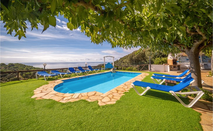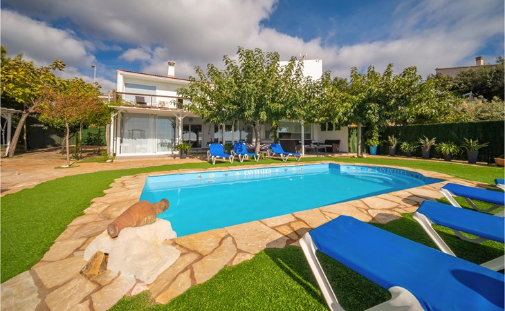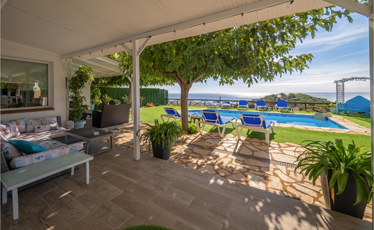 Op slechts 2 km van de stranden van de Maresme, in een rustige, dunbevolkte woonwijk, ligt dit droomvakantiehuis met een spectaculair uitzicht op zee van Santa Susana.