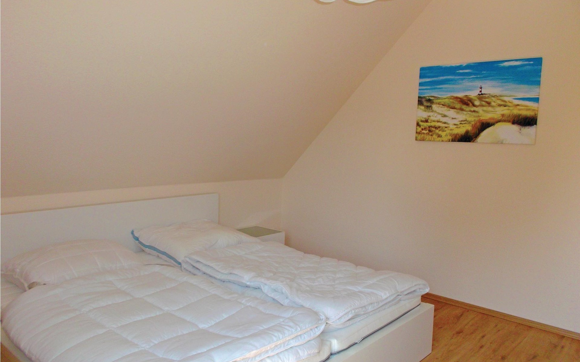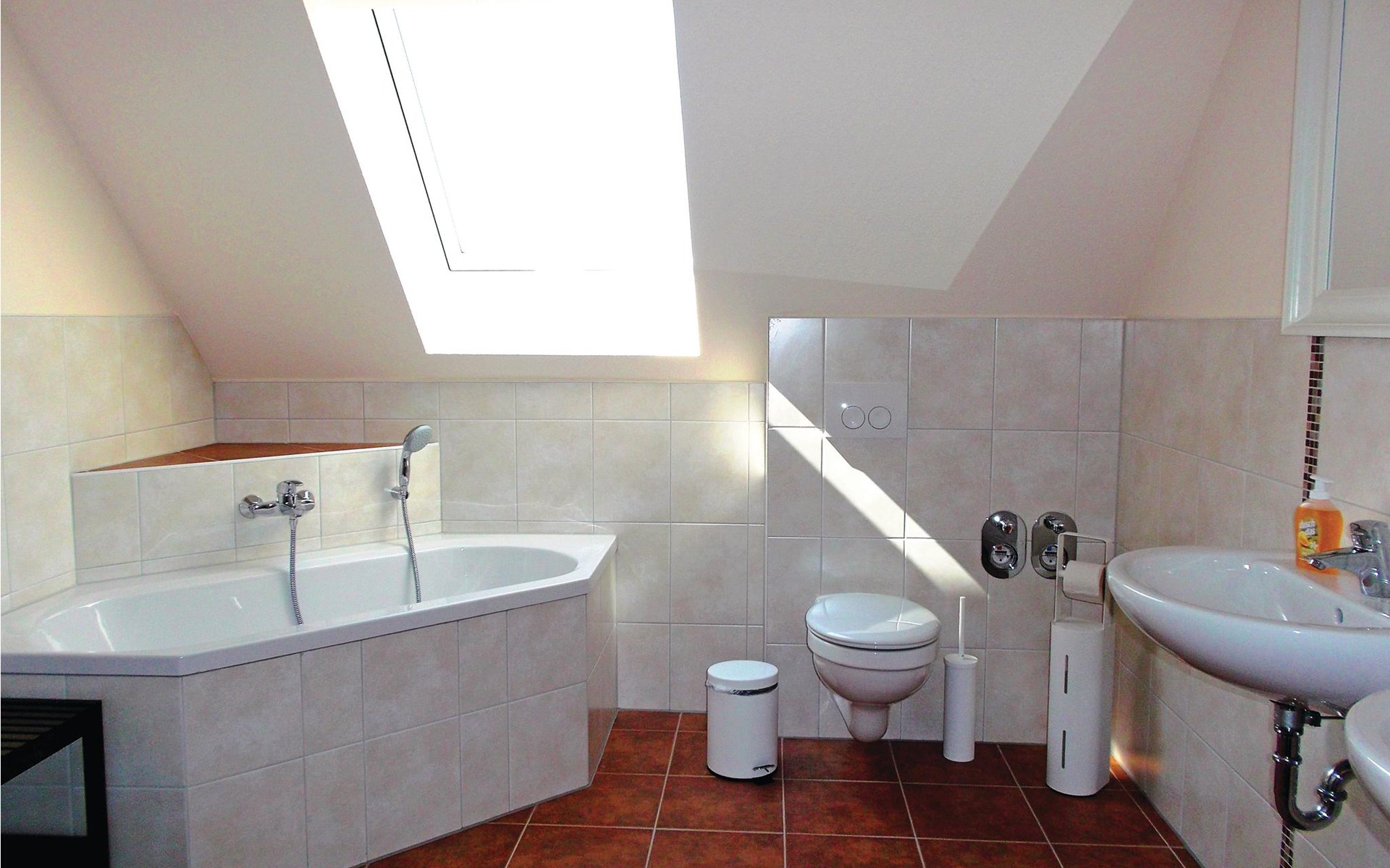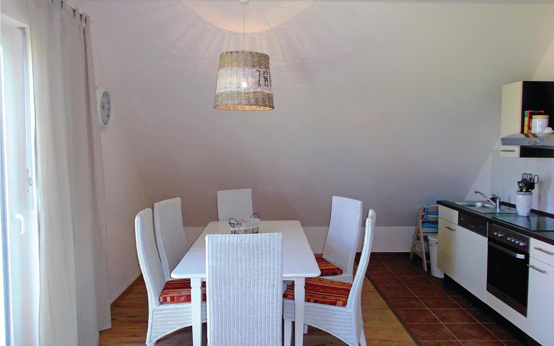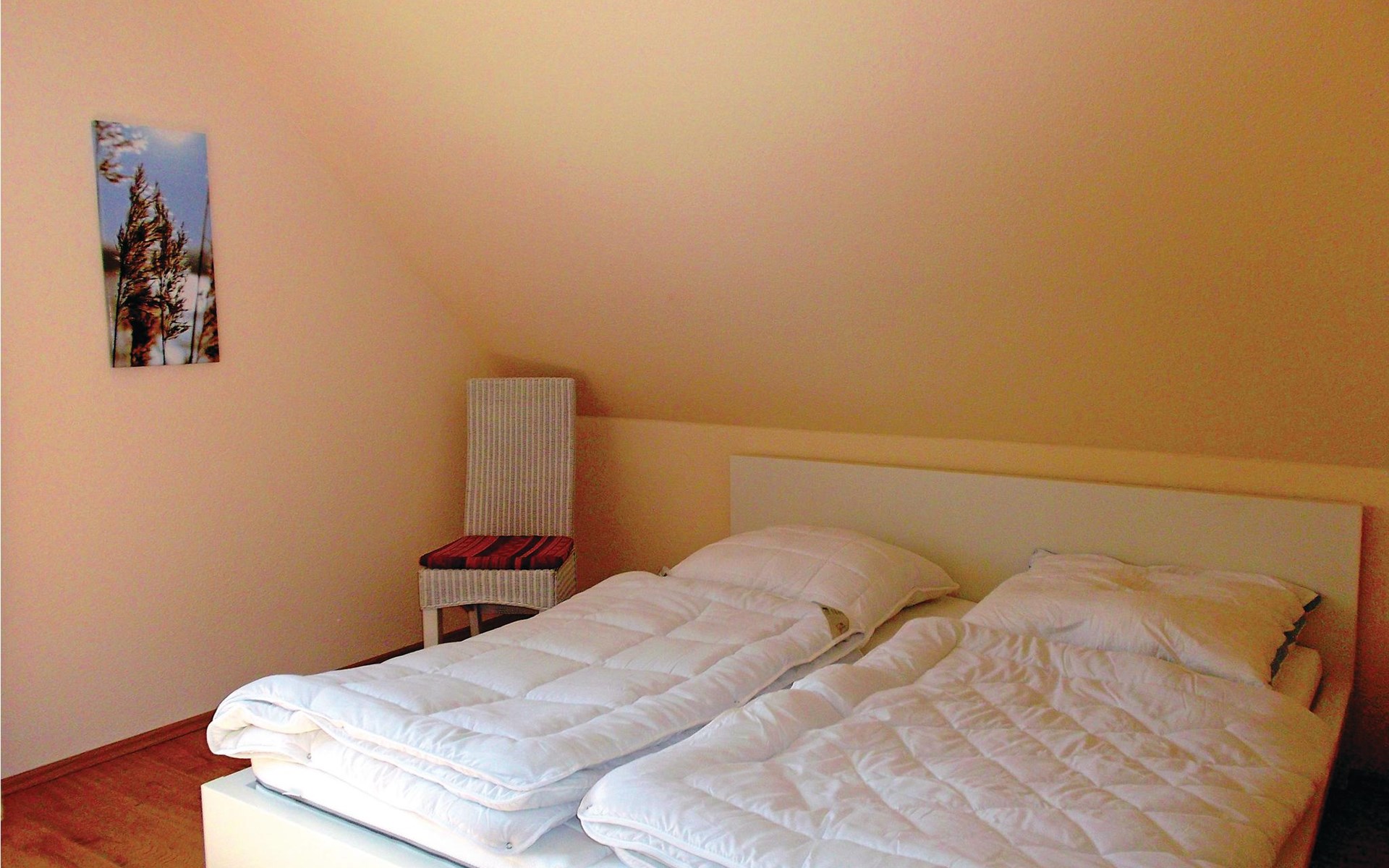 Ruime vakantiewoning op de zolder van een modern huis dat in totaal uit drie woningen bestaat (zie ook DMK443 en 444). U beschikt over een eigen barbecueterras onderaan het huis. Een gemeenschappelijke sauna op het terrein kan gratis worden gebruikt. Op ongeveer 17 km afstand weet de wereldcultuurstad Wismar de evenwichtsoefening tussen oudheid en moderniteit voortreffelijk te beheersen. Net als het eiland Poel, dat u te voet of met de fiets moet verkennen, is het een bestemming die de moeite waard is. In Wismar bevindt zich ook de Wonnemar wereld van avontuur en welzijn, die 365 dagen per jaar ultiem zwemplezier voor het hele gezin biedt en daarom een goed alternatief is bij slecht weer tijdens uw badvakantie.